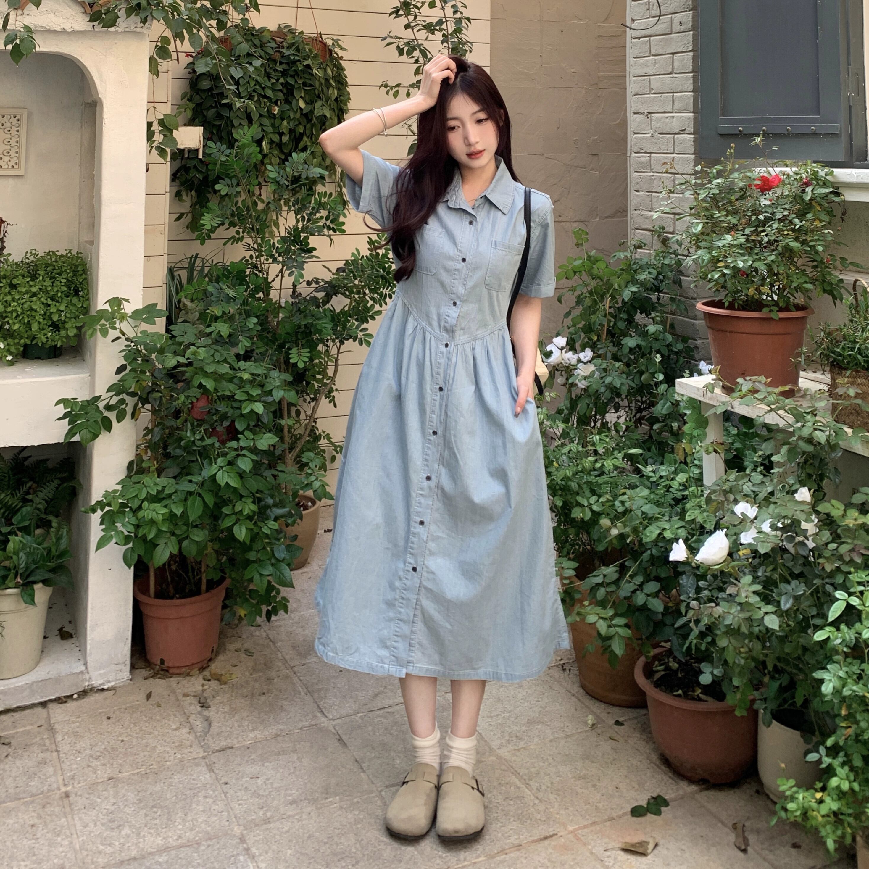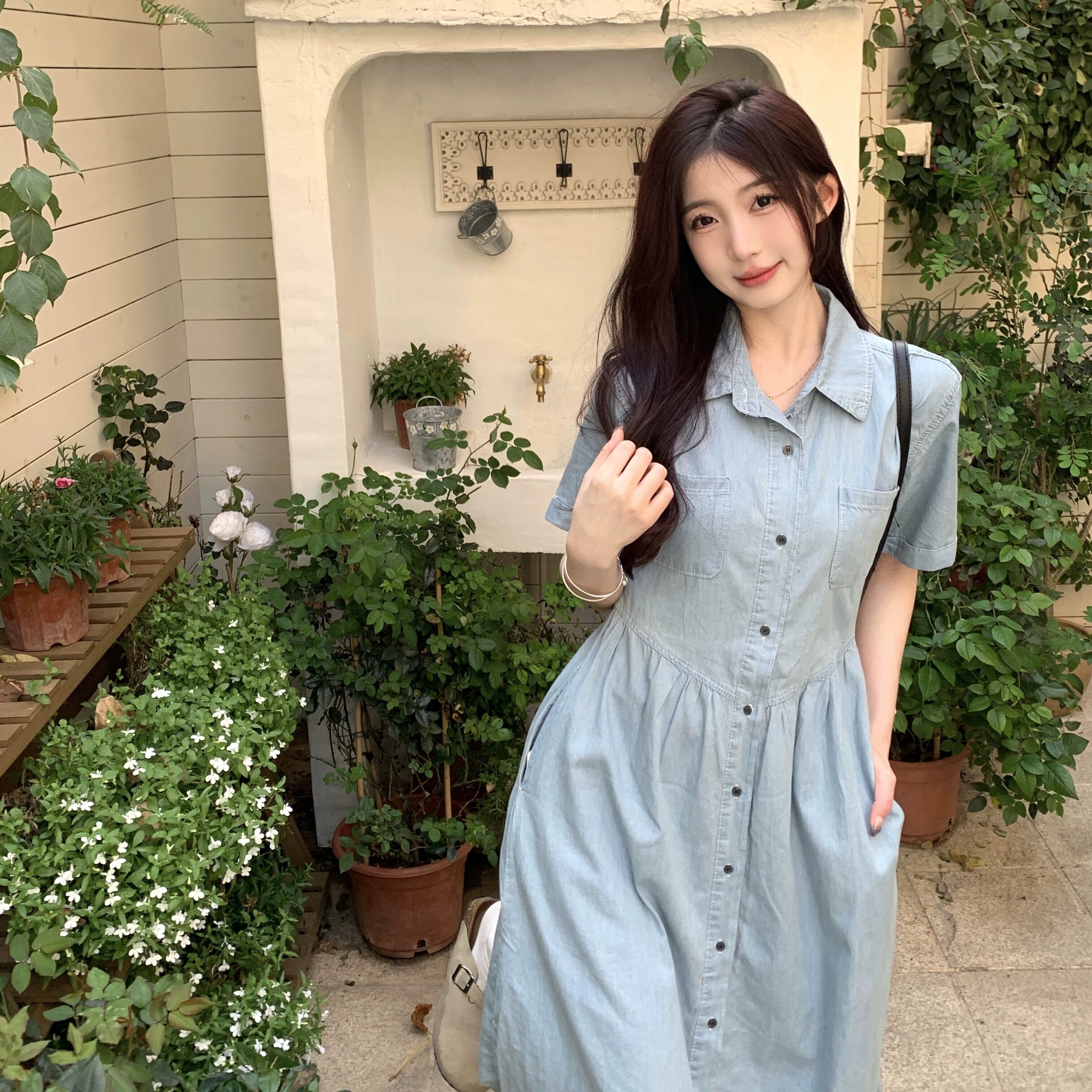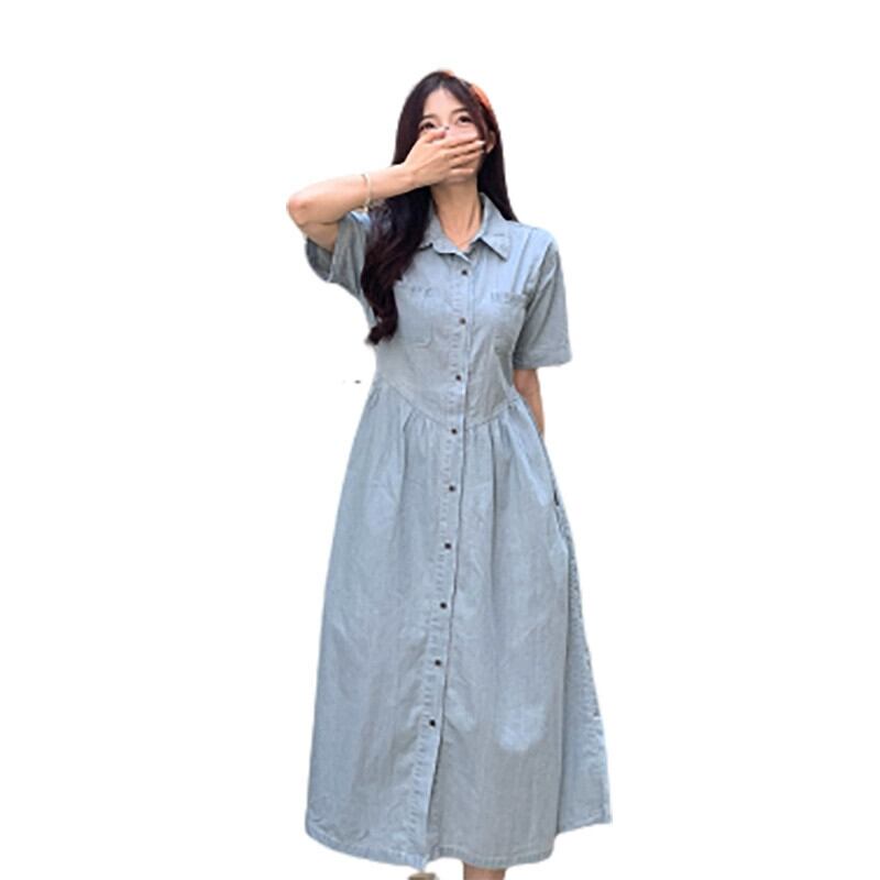 プラスサイズの婦人服 2023 流行の女性の夏の新しいファットシスターファッションウエスト痩身ルーズ半袖デニムドレス女性 大きめサイズ サマー 夏物 8884190547702285