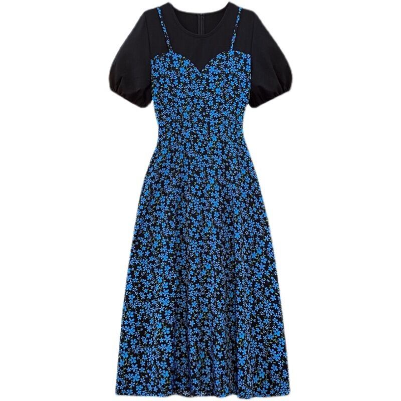 プラスサイズの婦人服 2023 流行の女性の夏の新しいファットシスター不規則なスリットスプライシングフェイクツーピース花柄ドレス女性 大きめサイズ サマー 夏物 8884177620068445