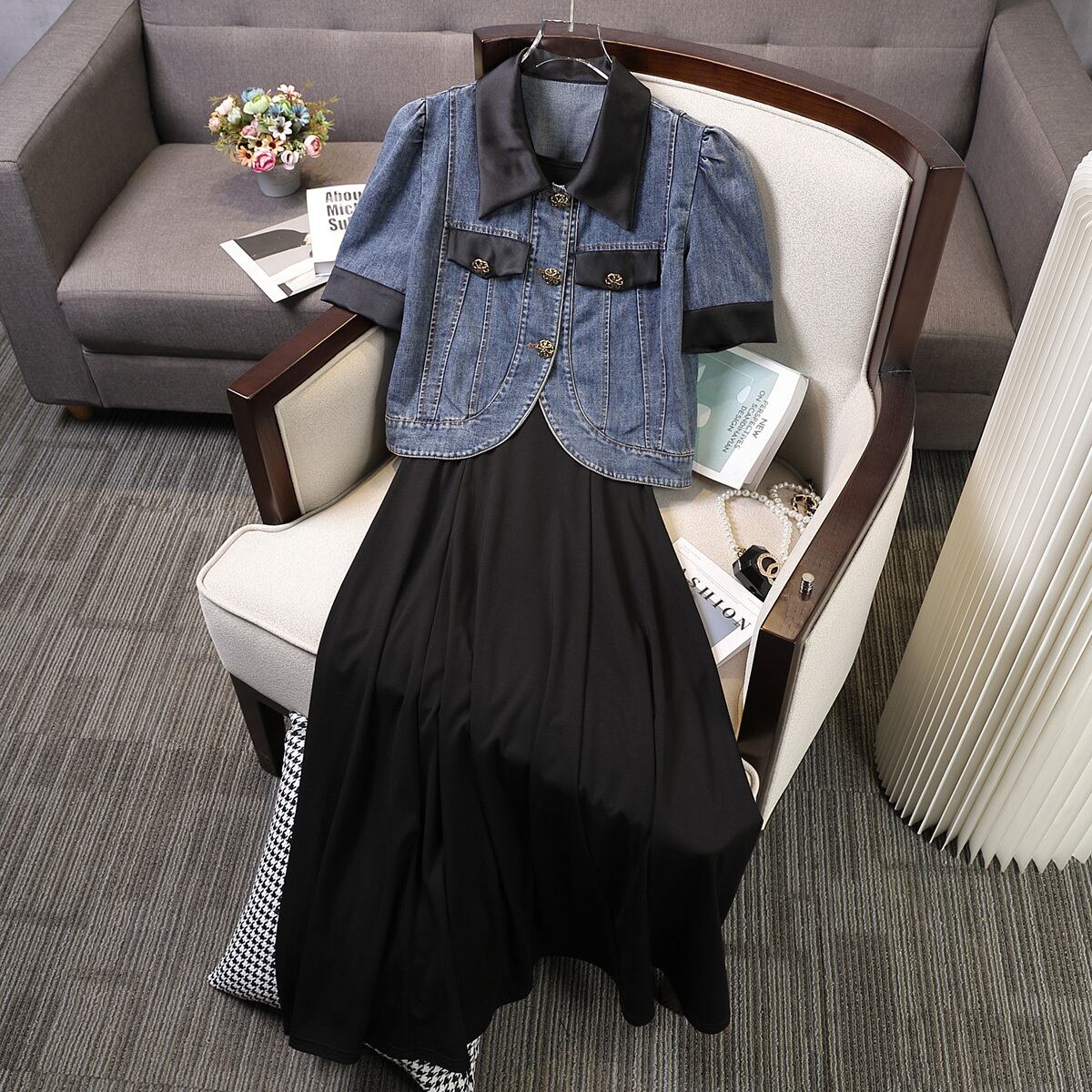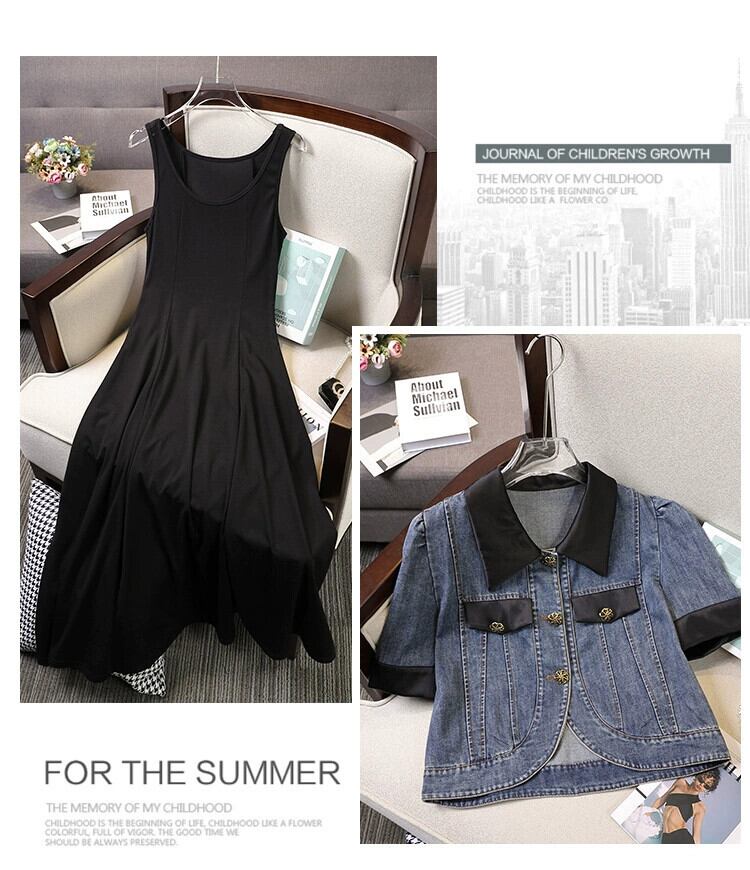 女性のファットシスターサマードレスデニムトップベストドレスツーピーススーツスリムカバー肌 夏物 8884131060360225