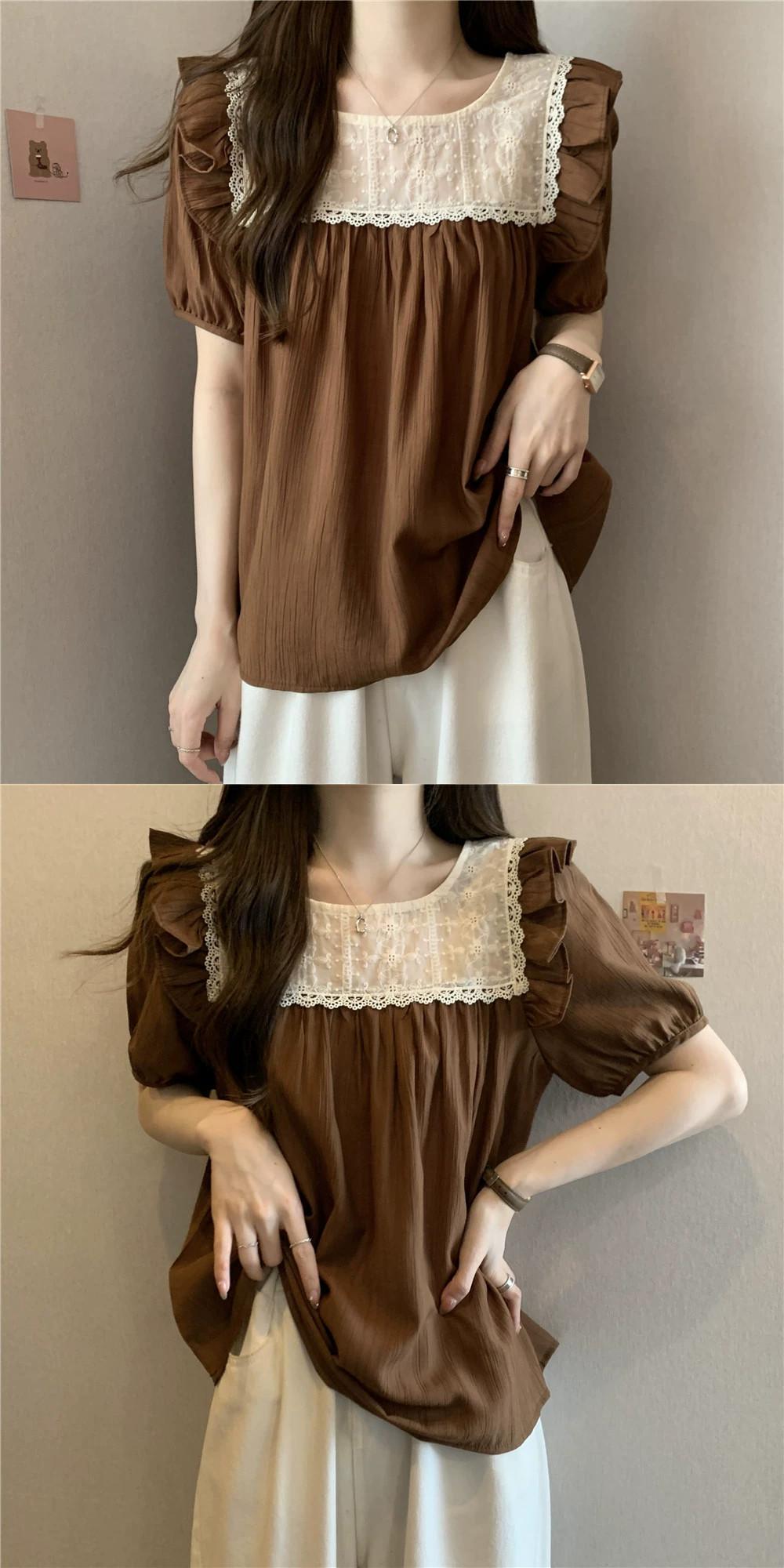 プラスサイズの婦人服 2023 脂肪姉妹夏の新しいファッションレーススプライシングルーズカバー肉と薄い半袖トップ 大きめサイズ サマー 夏物 8884147617682249