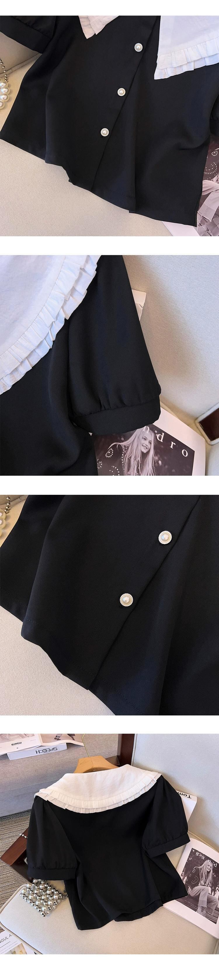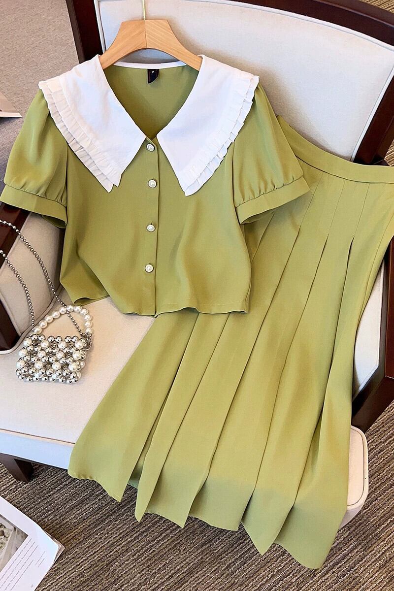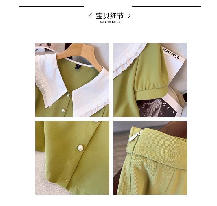 プラスサイズの婦人服 2023 流行の女性の夏の新しいファットシスターフレンチスタイルシャツ弾性ウエストスカートツーピーススーツ エラスティック 伸縮 大きめサイズ サマー 夏物 8884192404669847