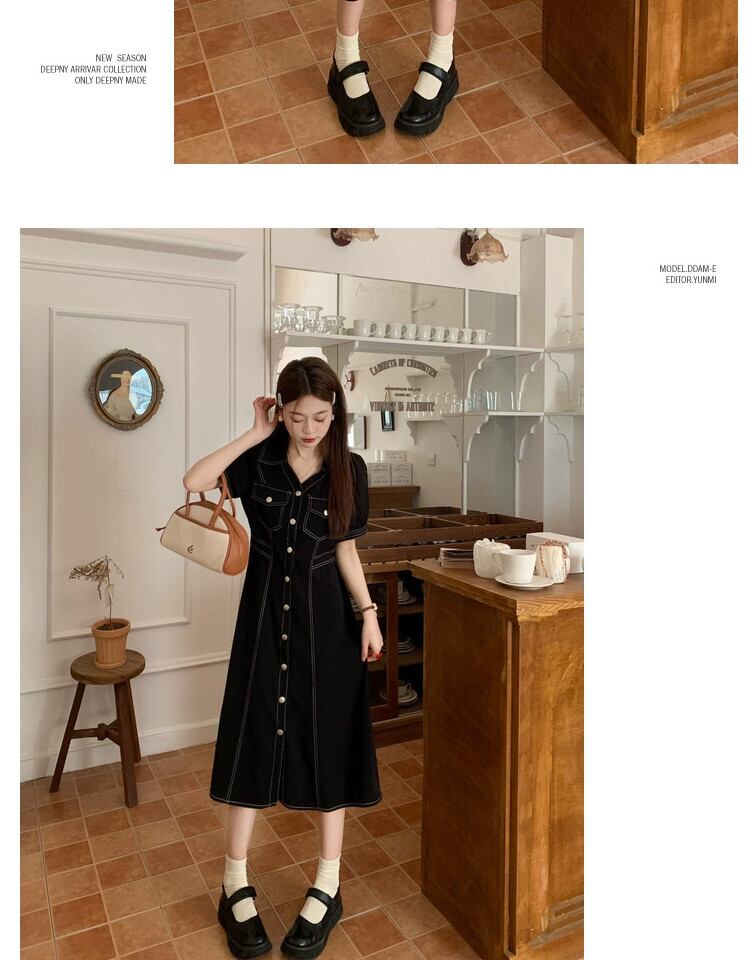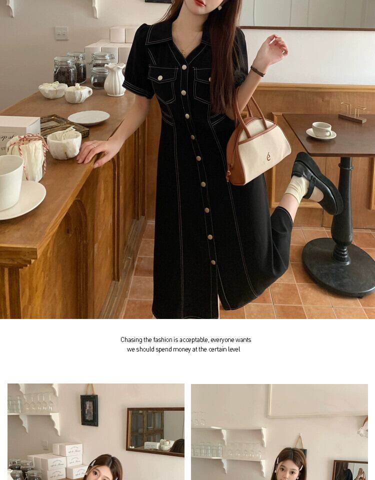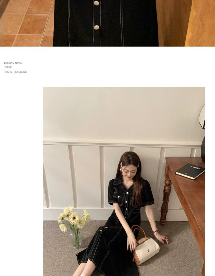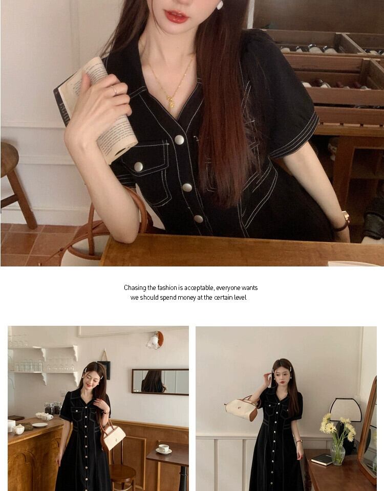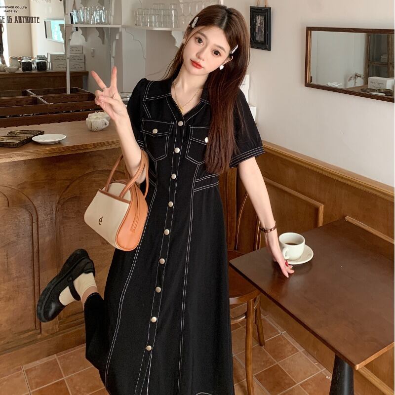 プラスサイズの婦人服 2023 ファットシスター夏新レトロブライトライン薄い半袖シングルブレストシャツドレス 大きめサイズ サマー 夏物 888418602698169