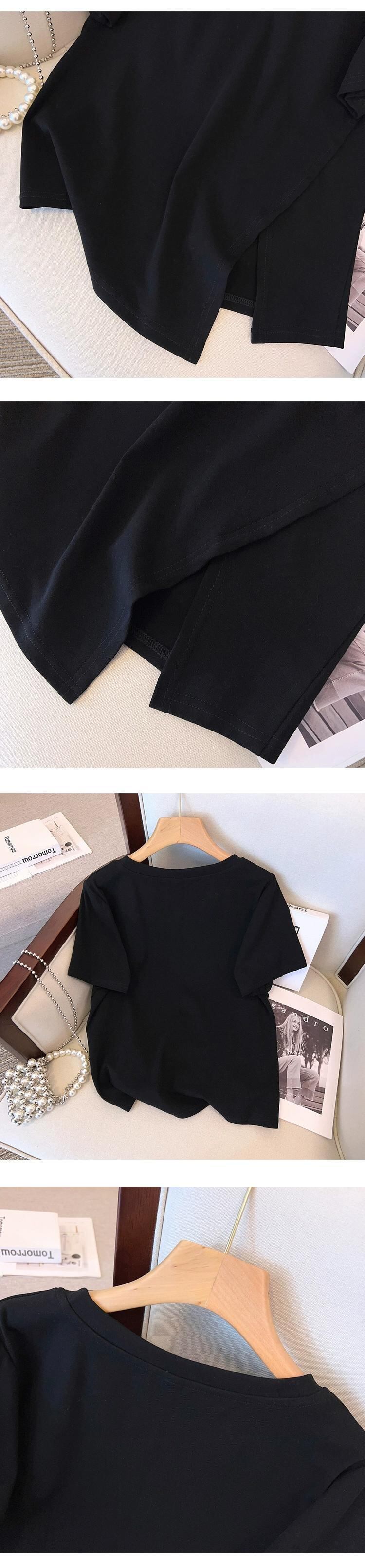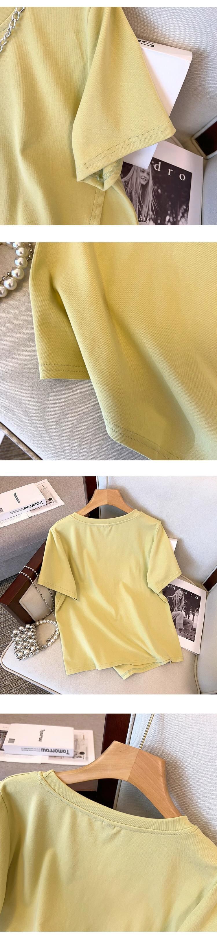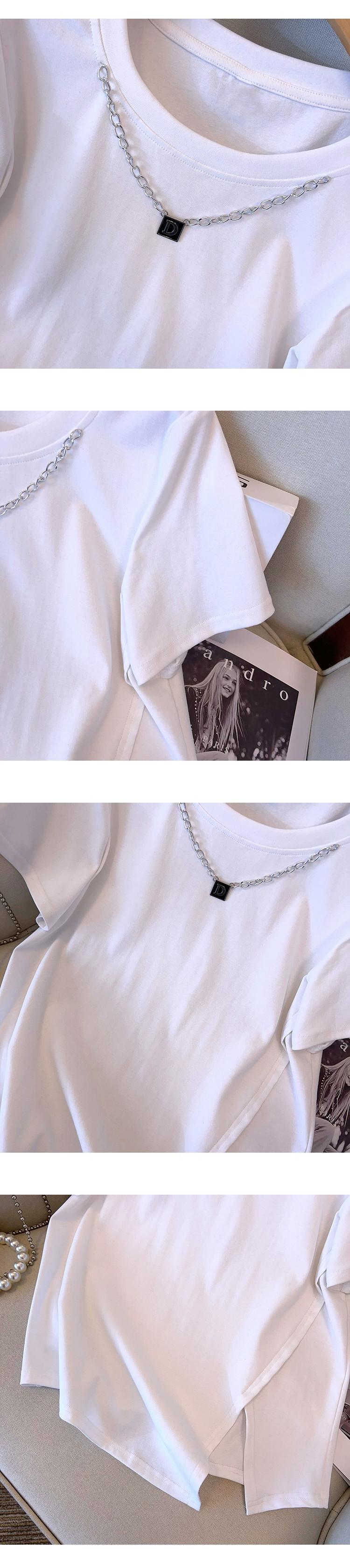女性のファットシスター夏のファッションファッション細いチェーンカラー非対称スリット Tシャツデザインセンスカバーベリートップ サマー 夏物 8884121844544770