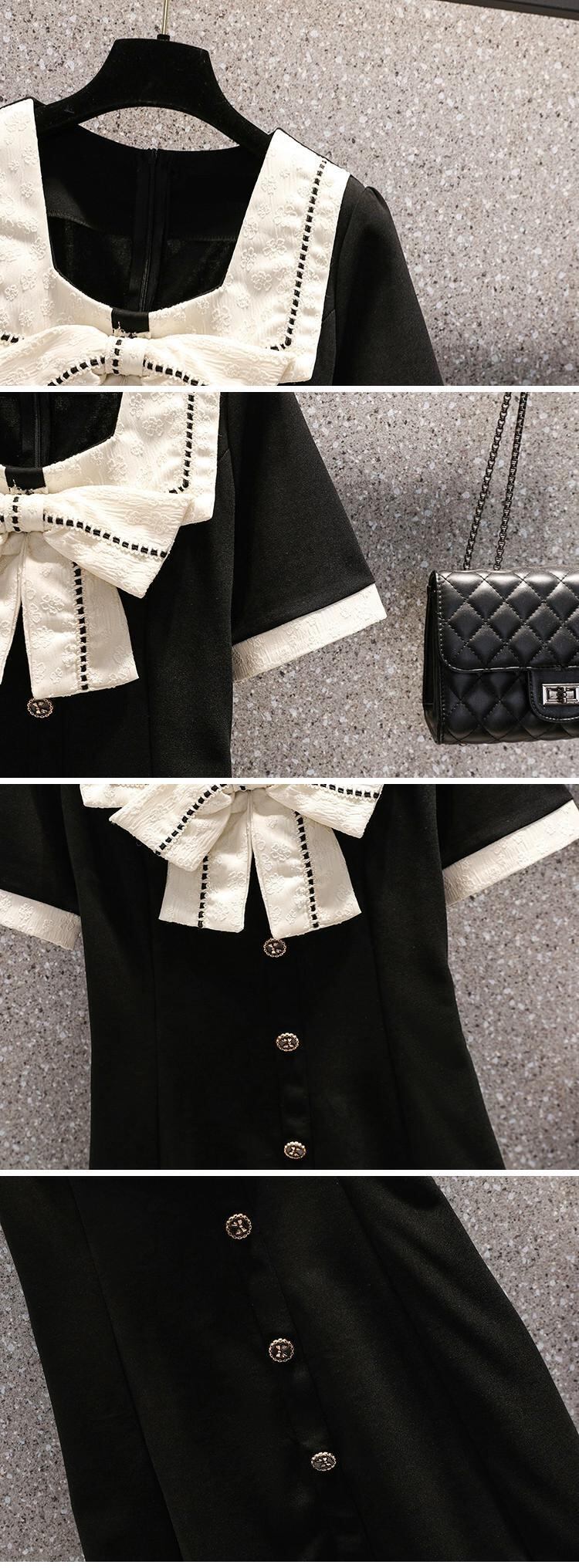 プラスサイズの婦人服 2023 夏の新しいファットシスタースクエアカラーリボンデザインセンススリムウエストドレス女性 大きめサイズ サマー 夏物 スクウェア 8884147854448598