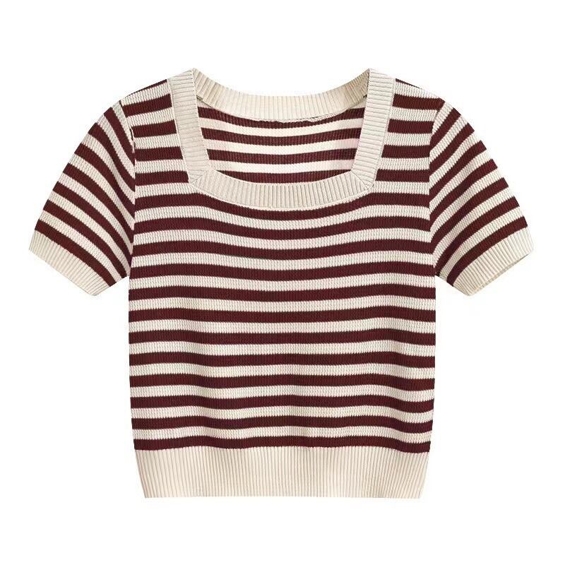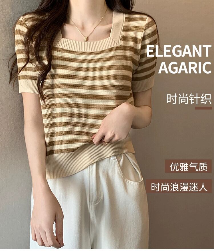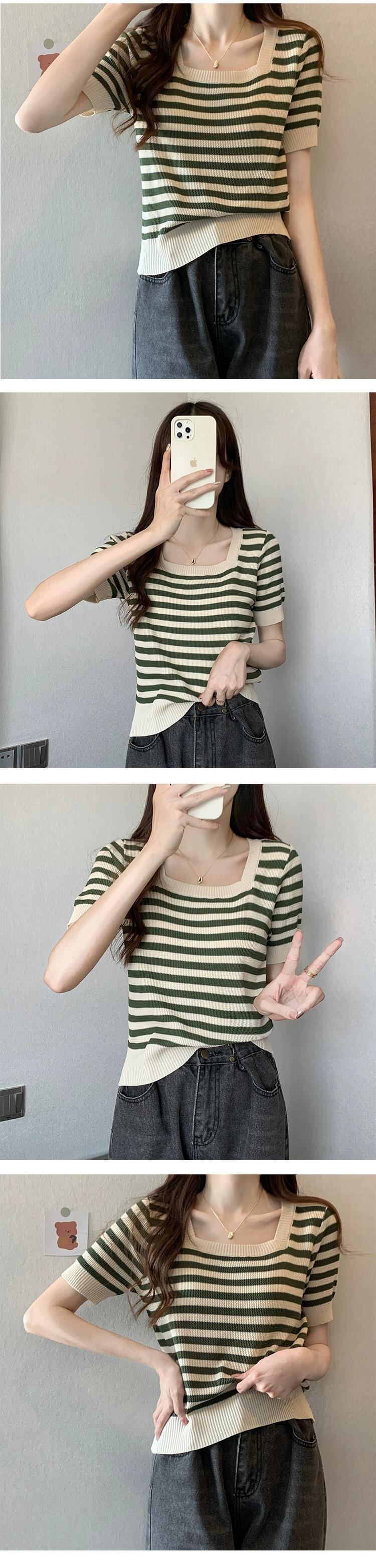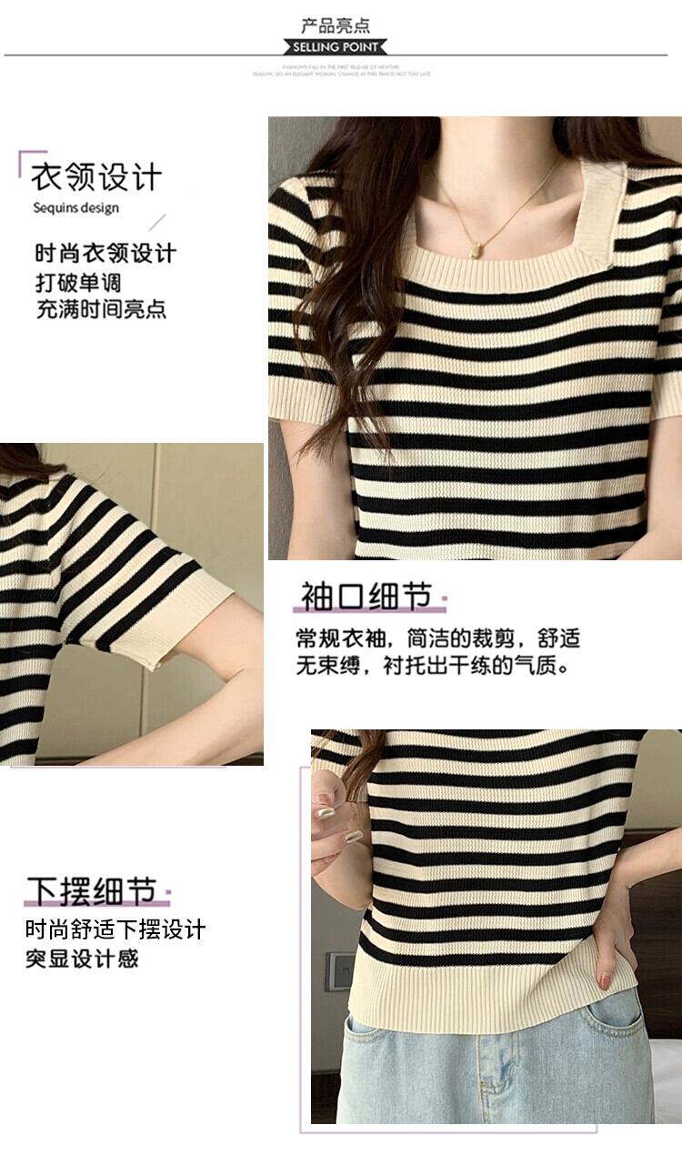 女性の夏服、太った姉妹、オールマッチカジュアル、薄手のニット T シャツ、ニッチなアイスシルクのボトムス シャツ、お腹をカバーする半袖トップス サマー 夏物 Tシャツ 8884162092893194