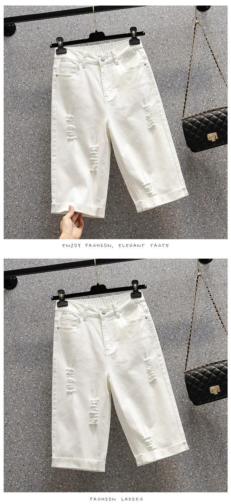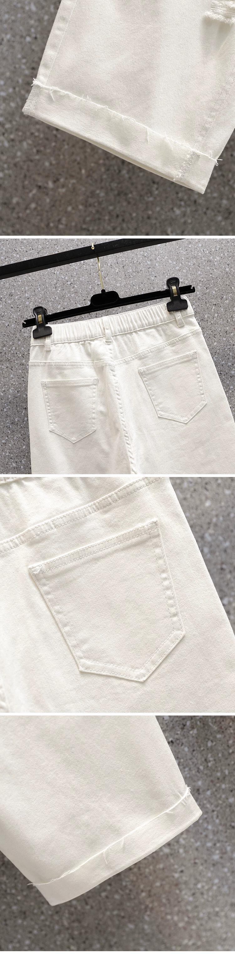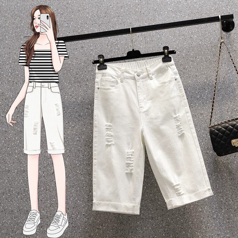 プラスサイズの女性の脂肪姉妹弾性リッピング弾性ウエストジーンズ見た目薄い 5 点パンツ脂肪 mm ホワイトショートパンツパンツ エラスティック 伸縮 大きめサイズ ショーツ ブルマー 8884167850751283