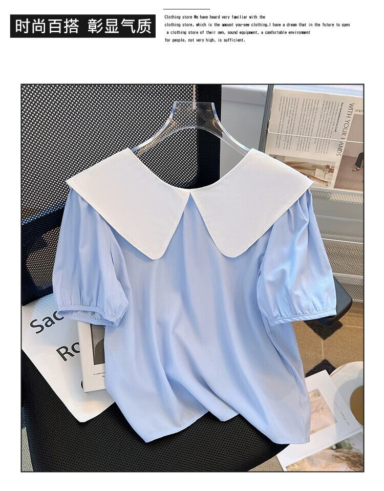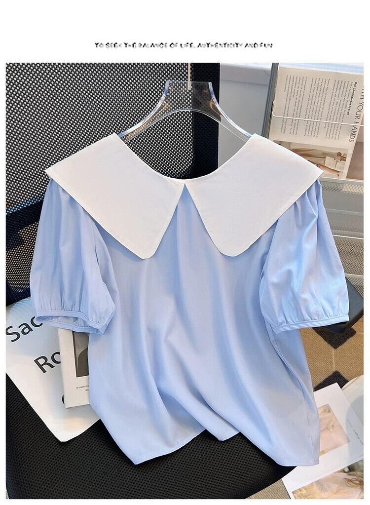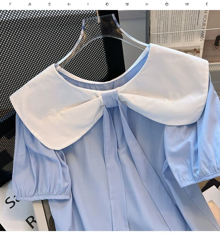 プラスサイズの女性の夏服ファットシスターズフレンチネクタイリボン前後ツーウェアトップスニッチ半袖痩身シャツ 大きめサイズ サマー 夏物 8884169012007239