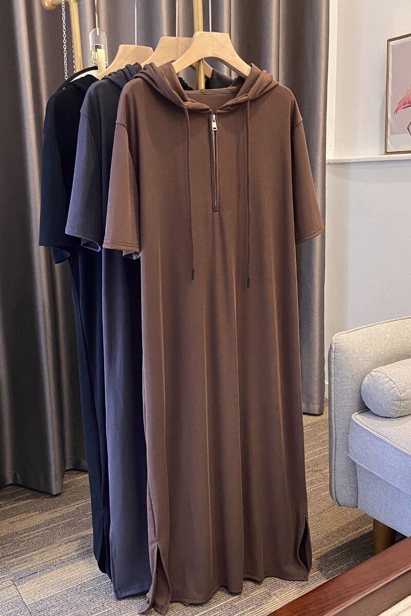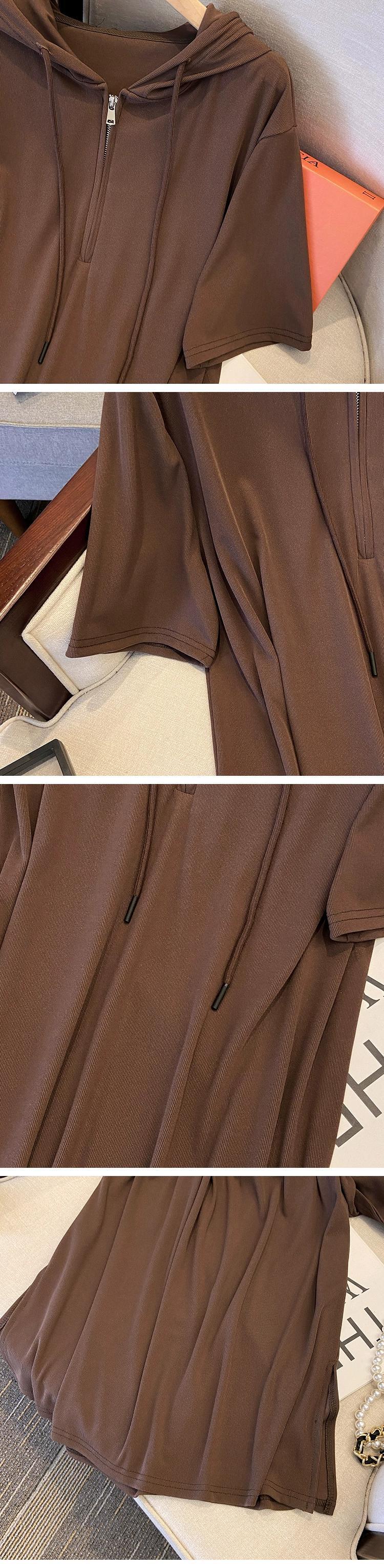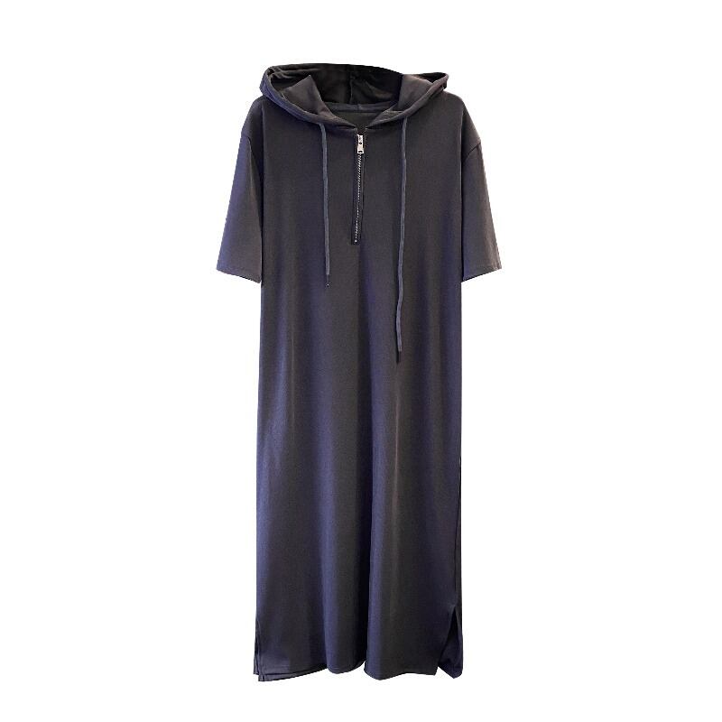 プラスサイズの婦人服 2023 夏の新ファットシスターファッションルーズ年齢軽減フード付きスリットニットドレス女性 大きめサイズ サマー 夏物 888419184839444