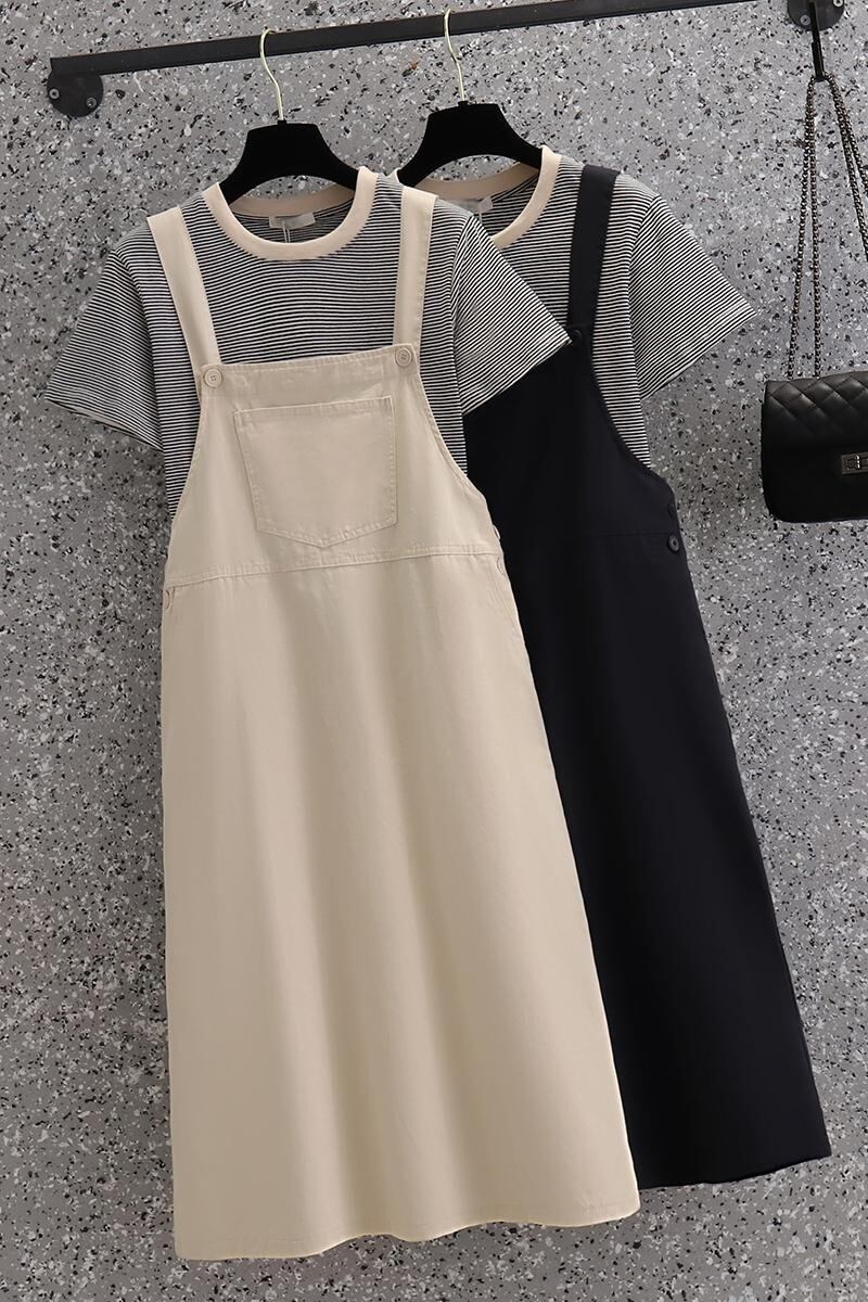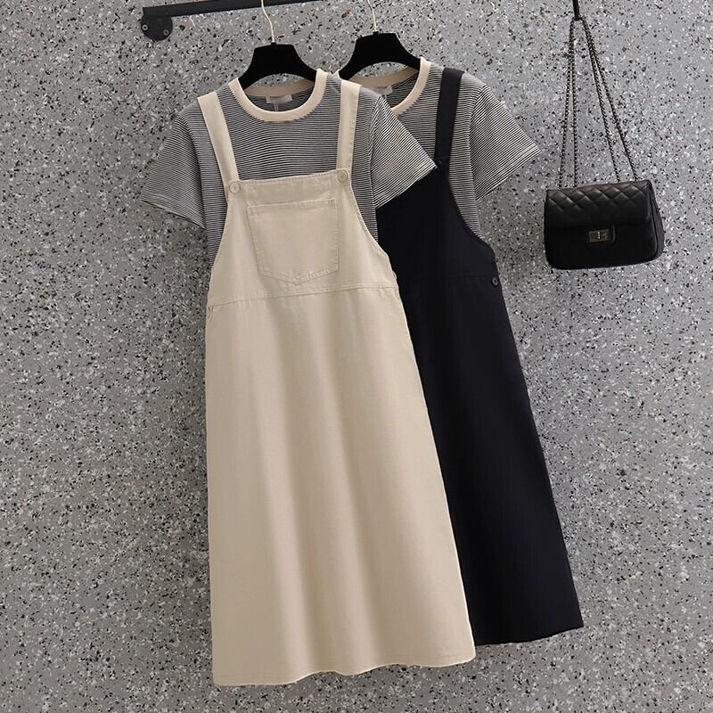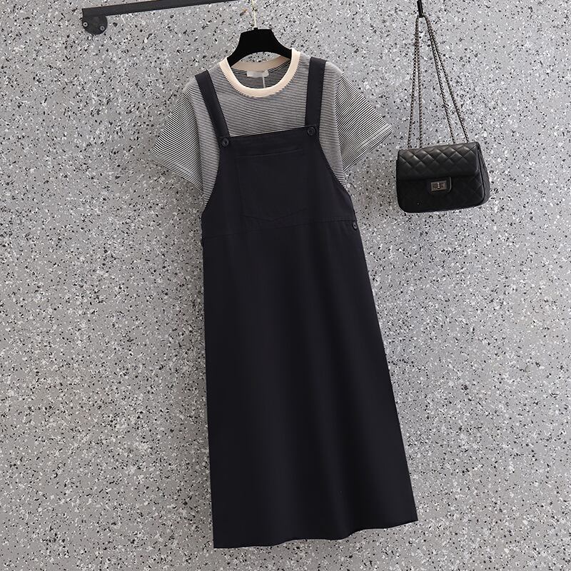 プラスサイズの婦人服 2023 ファットシスター夏の新半袖 Tシャツミッドレングススリムサスペンダースカートツーピーススーツ 大きめサイズ サマー 夏物 8884128718076202