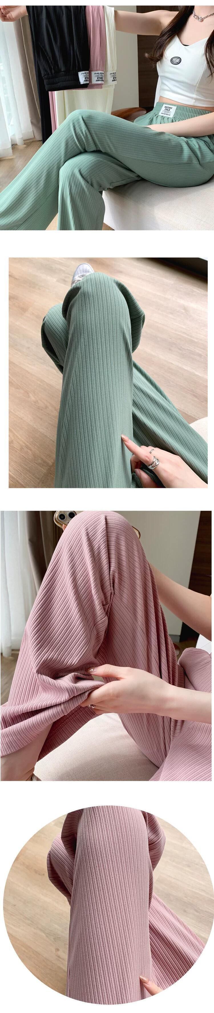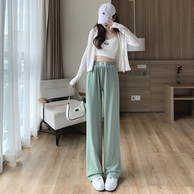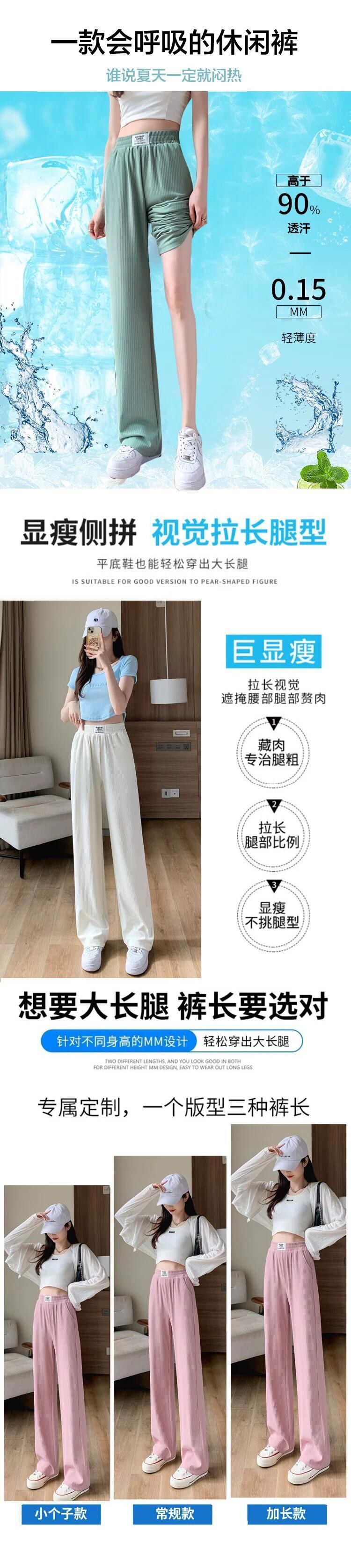 プラスサイズの婦人服 2023 流行の女性の夏の新しいスタイルファットシスターハイウエストスリムストレートチューブドレープアイスシルクカジュアルモップパンツ女性 ハイウェスト 大きめサイズ サマー 夏物 8884141482693778