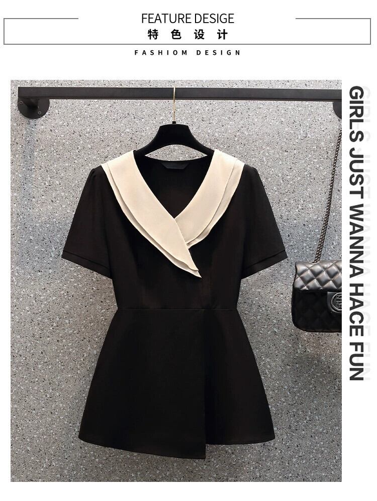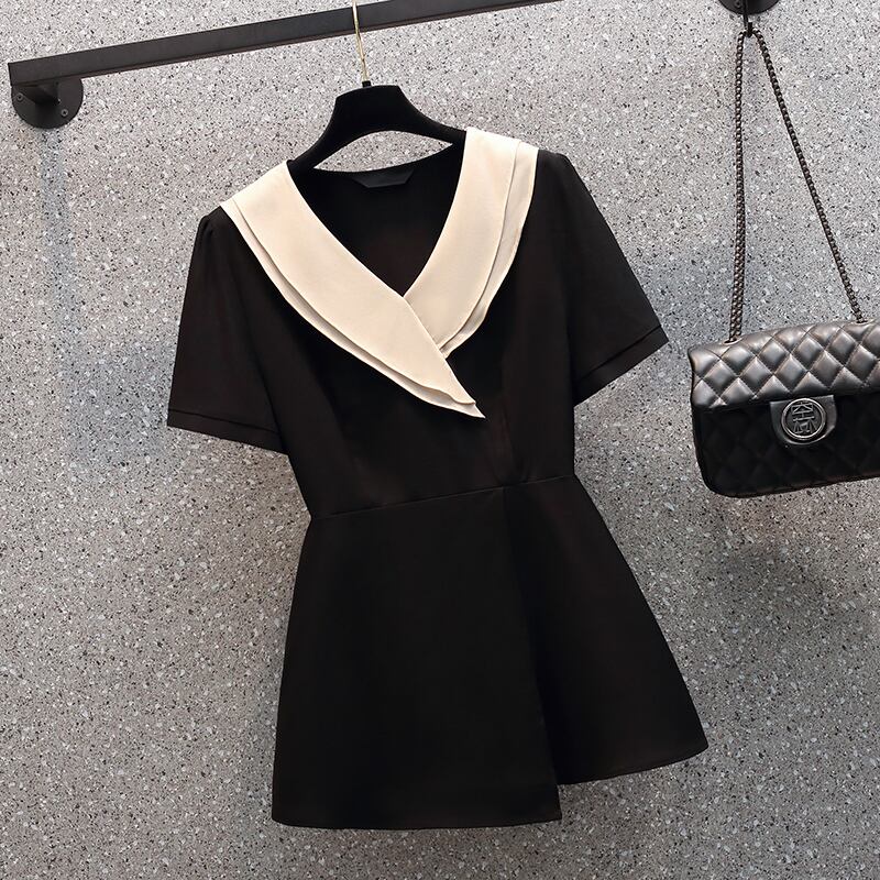 プラスサイズの婦人服 2023 夏の新しい太った妹は痩せて年齢を軽減する蓮の葉のエッジウエストウエストオールマッチ気質トップ女性 大きめサイズ サマー 夏物 8884134825599658