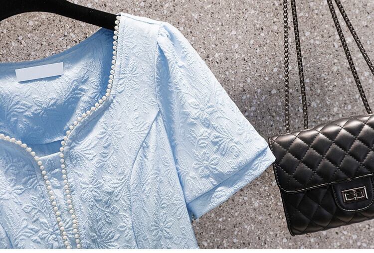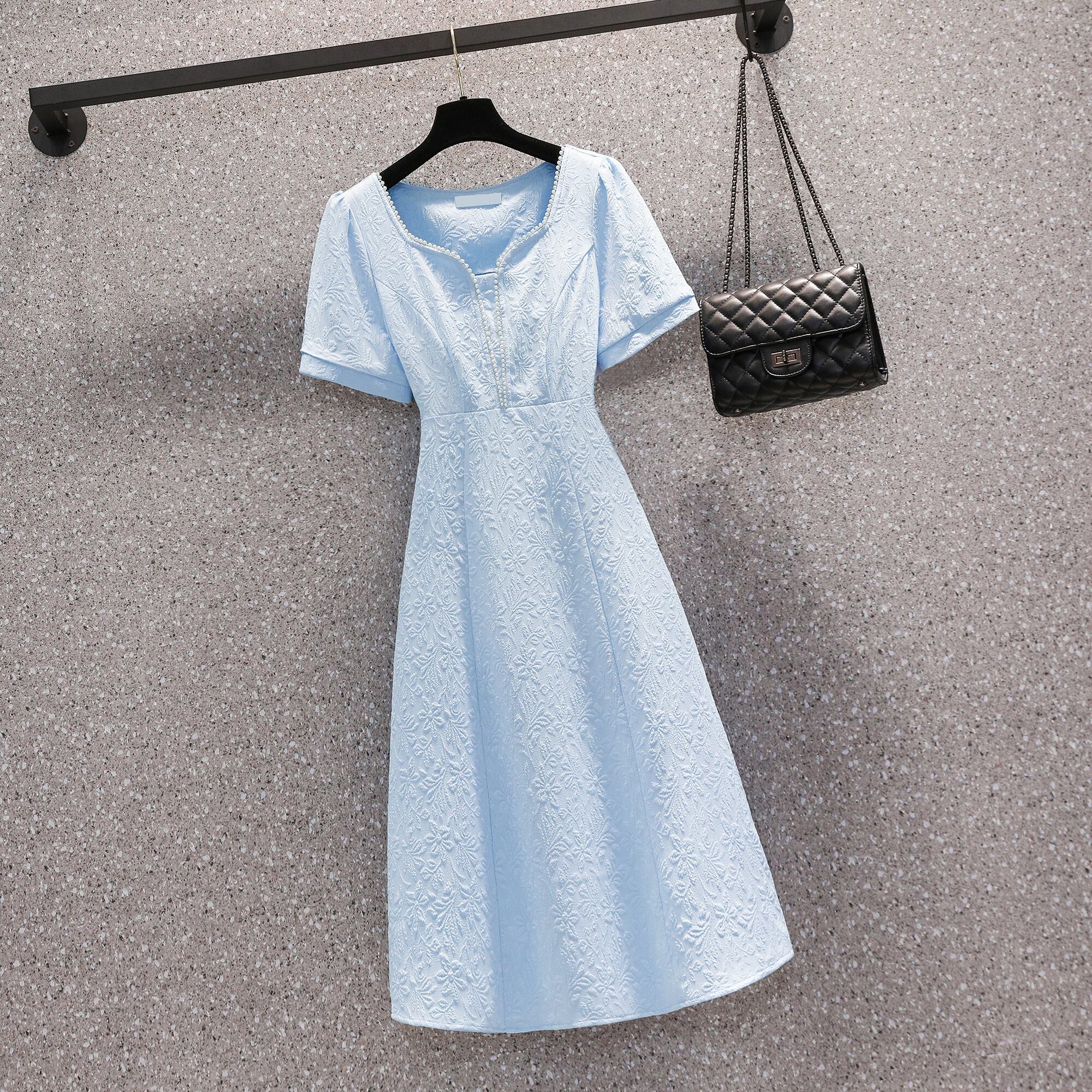 プラスサイズの婦人服 2023 脂肪姉妹夏の新しい気質薄いスクエアカラージャカードファッション半袖ドレス女性 大きめサイズ サマー 夏物 スクウェア 8884190318691561
