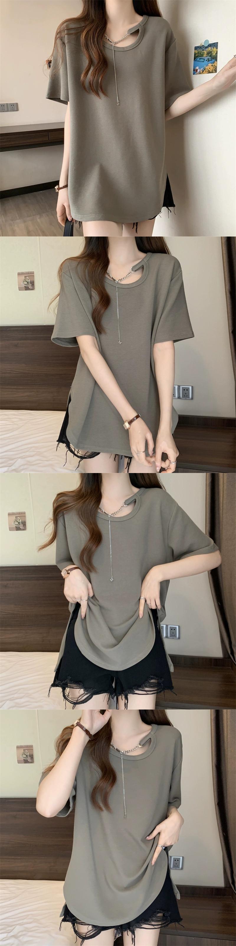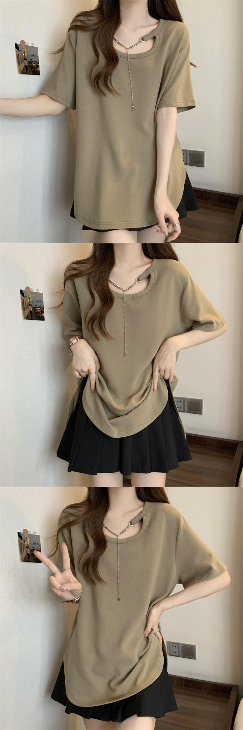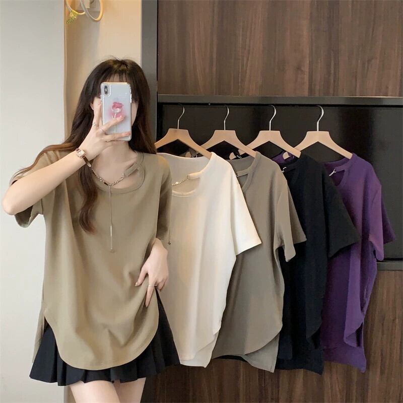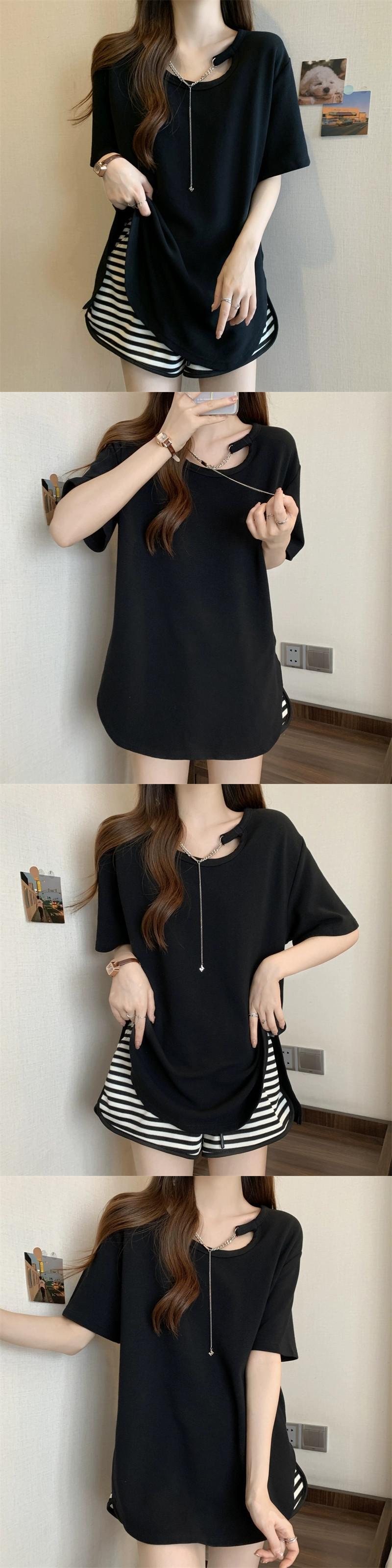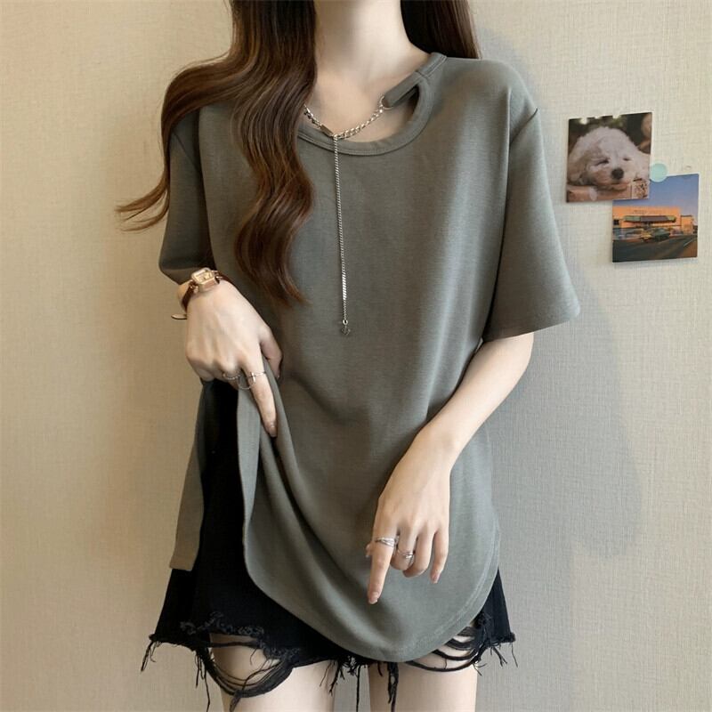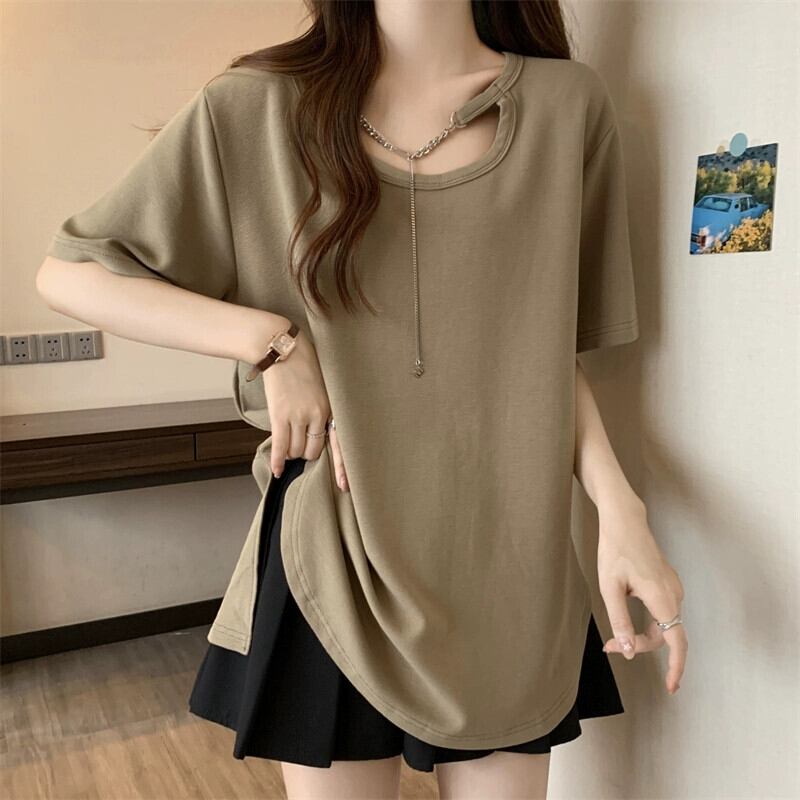 大きいサイズのレディース夏服、太ったお姉さん、カジュアル、ゆったりデザイン、スリムなお腹カバーシックトップス、お腹カバーTシャツバージョン 大きめサイズ サマー 夏物 8884119911397081