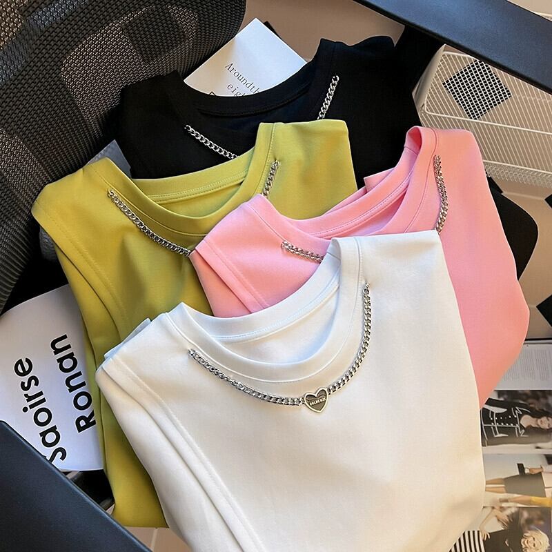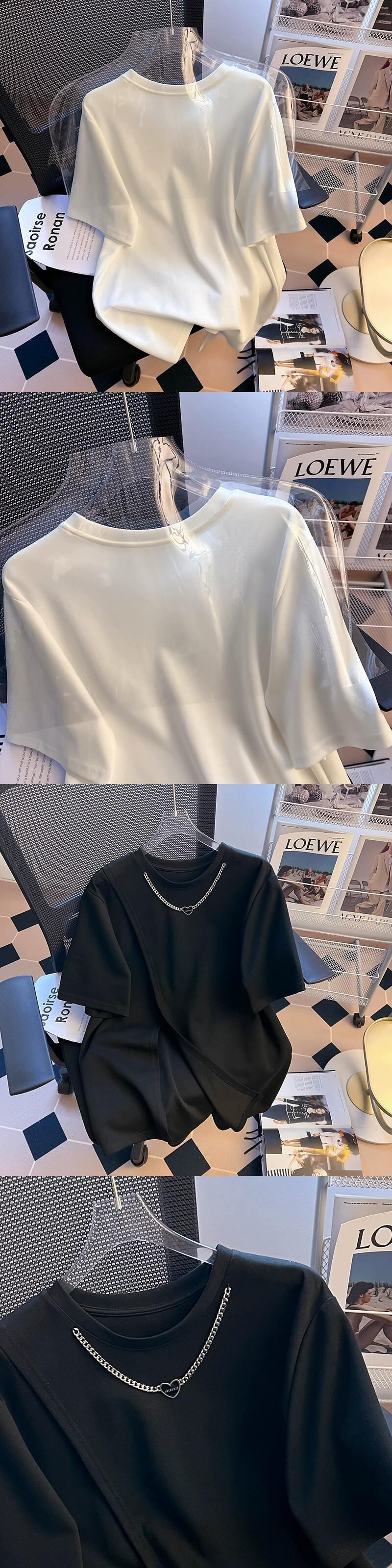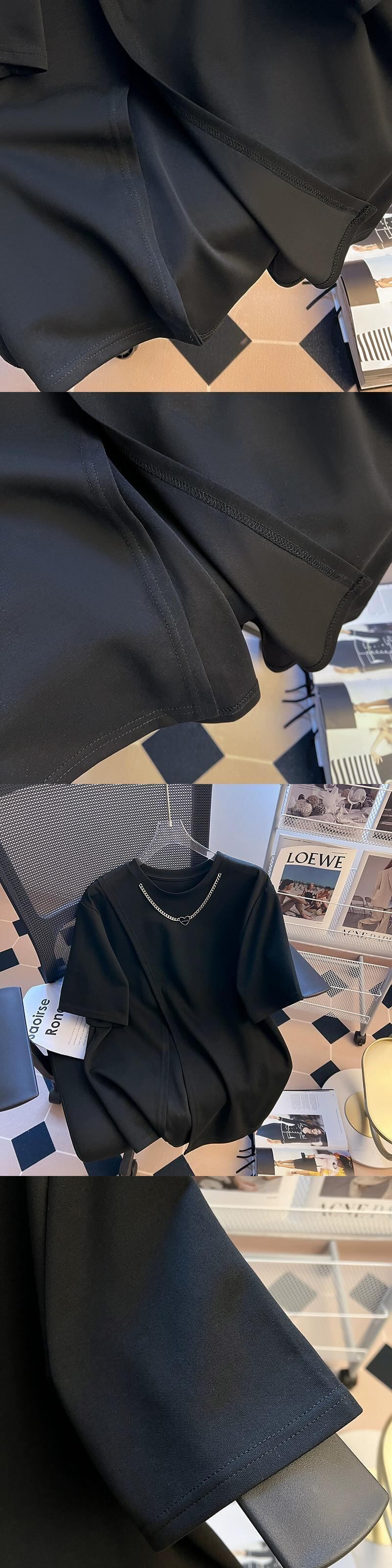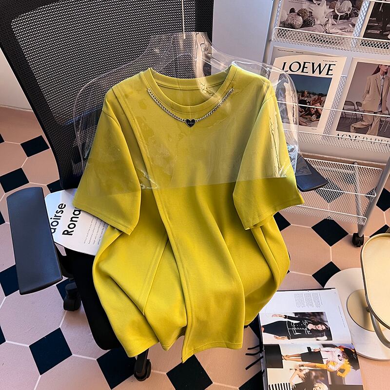 プラスサイズの女性のファッショントレンディな夏のファットシスターファッションデザイン半袖スリットショー薄いオールマッチ Tシャツフランスの女性のトップス 大きめサイズ サマー 夏物 8884128587806663