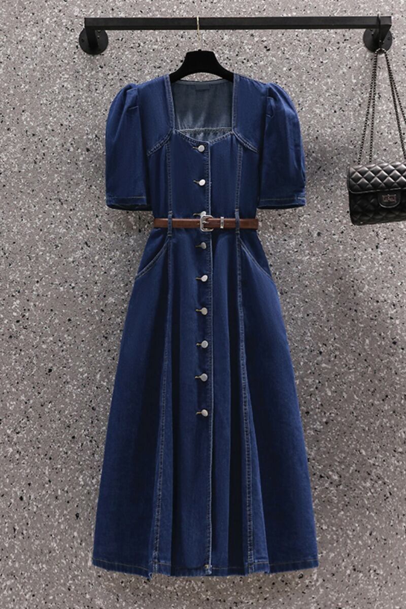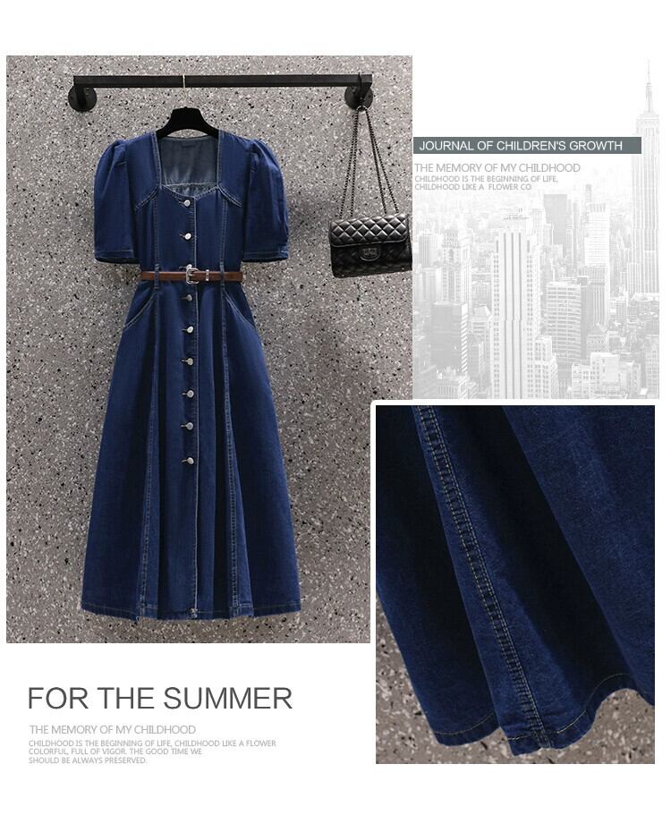 プラスサイズの女性 2023 トレンディな女性の夏の脂肪姉妹痩身レトロ eign スタイルデニム気質ドレスカバー肉ロングスカートスカート 大きめサイズ サマー 夏物 8884158557837192