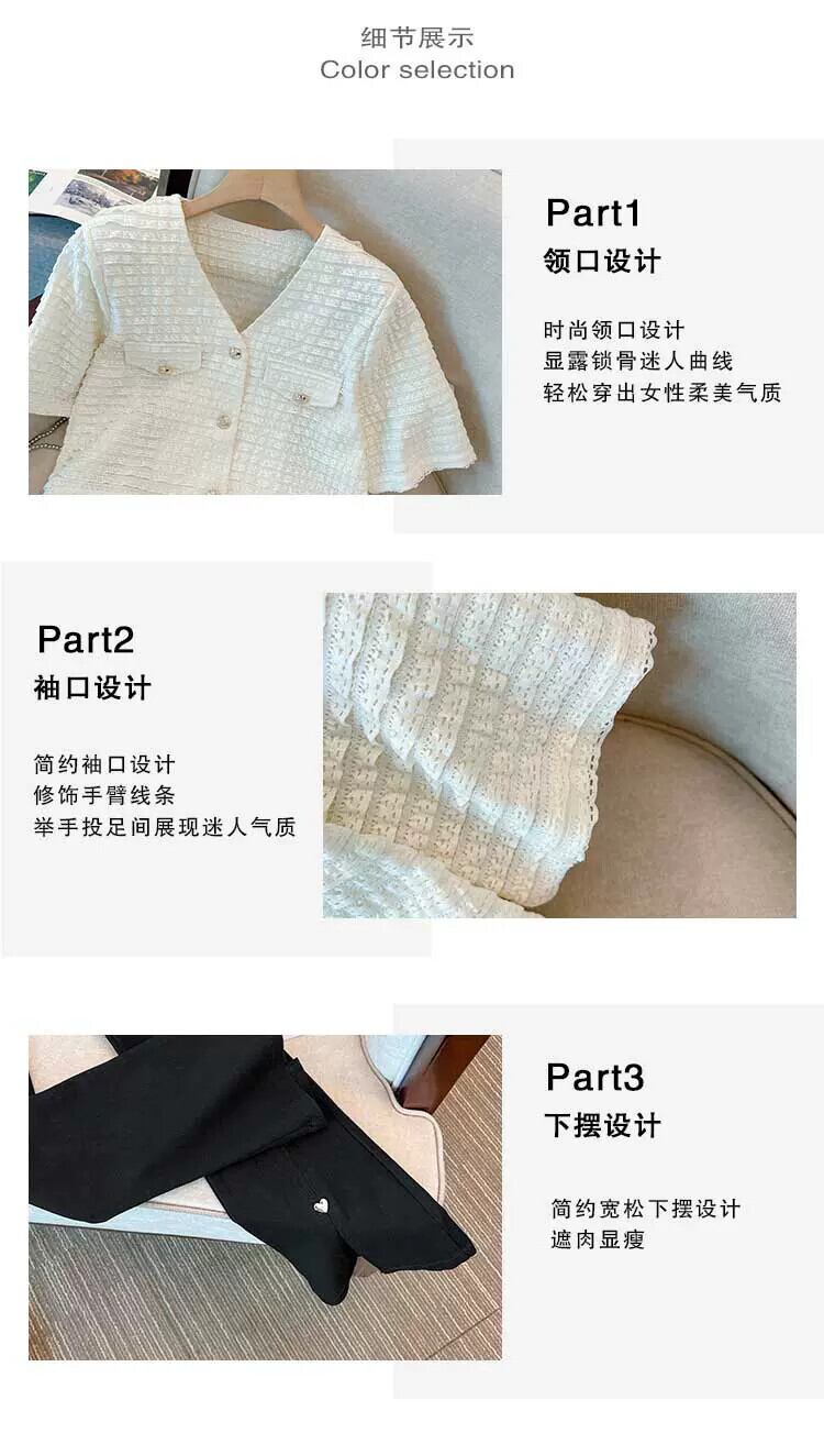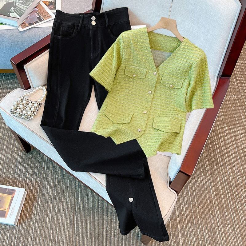プラスサイズの婦人服 2023 夏の新しいファットシスターオールマッチスリムトップス年齢を軽減する無地カジュアルパンツ 2 点セット 大きめサイズ サマー 夏物 ソリッドカラー 8884185077501322