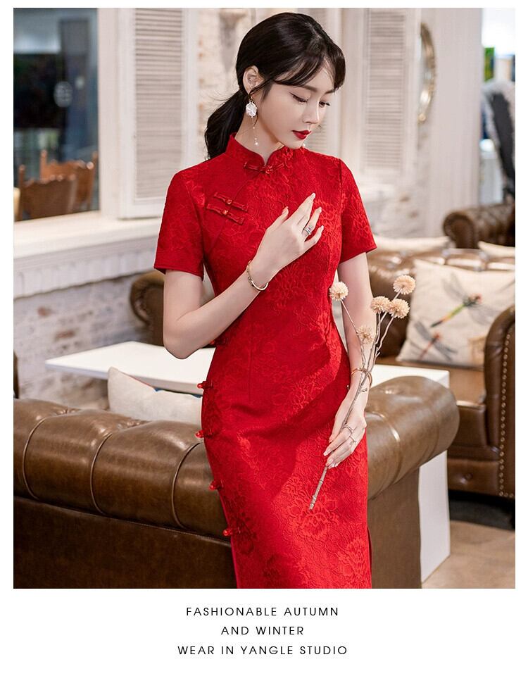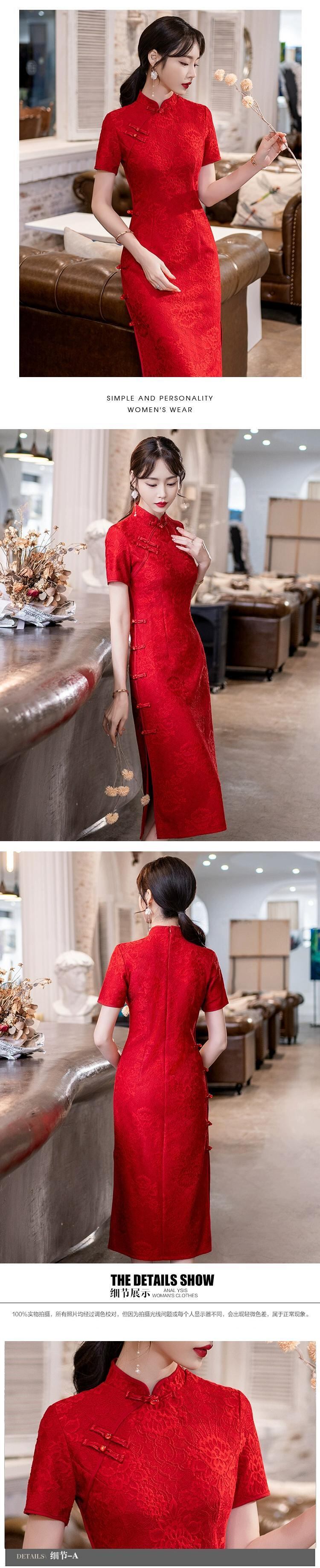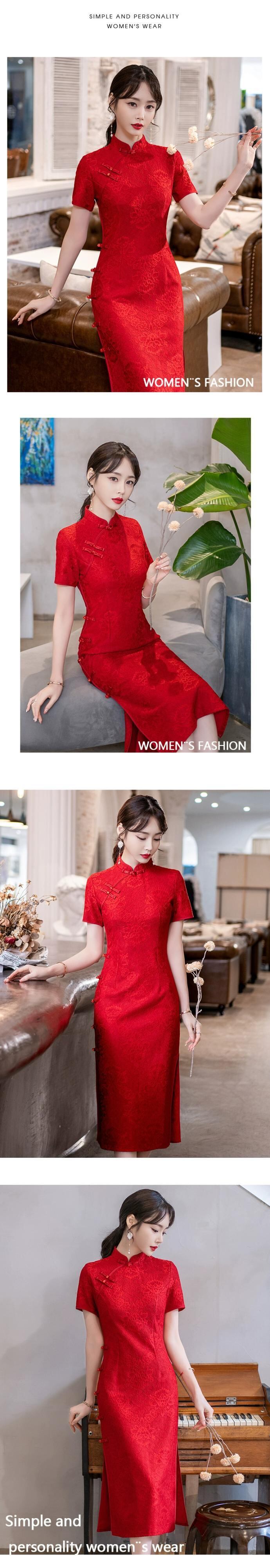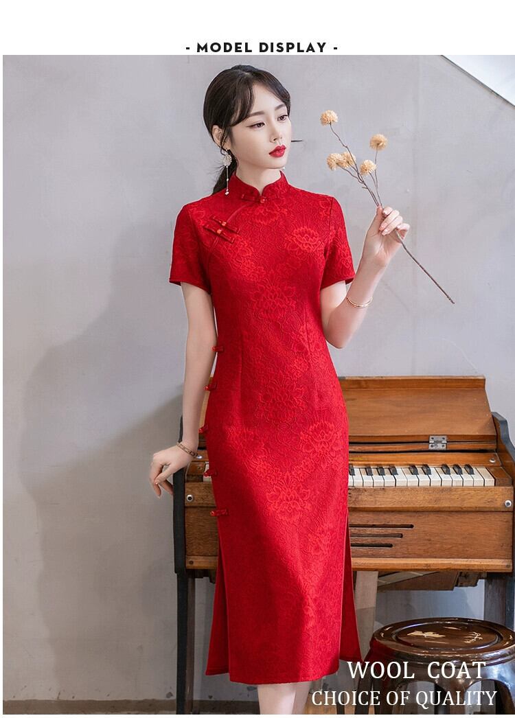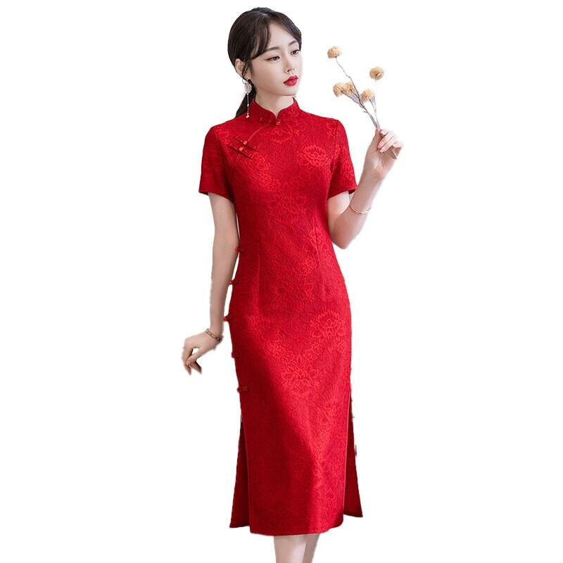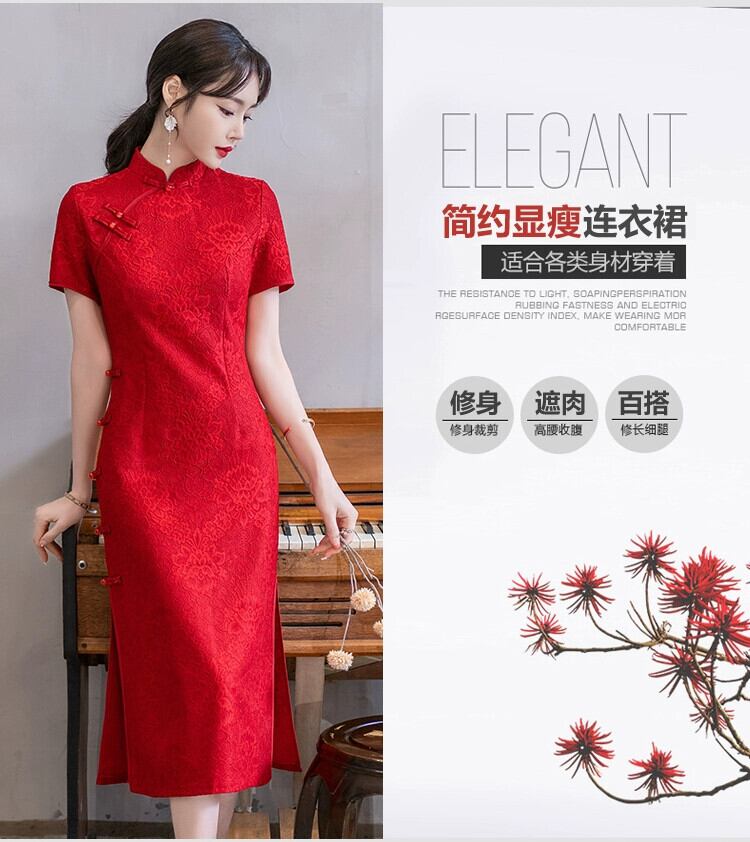 プラスサイズの婦人服 2023 脂肪姉妹夏の新中国風チャイナドレスワインレッドスリムスリム半袖ドレス 大きめサイズ サマー 夏物 8884196049594408