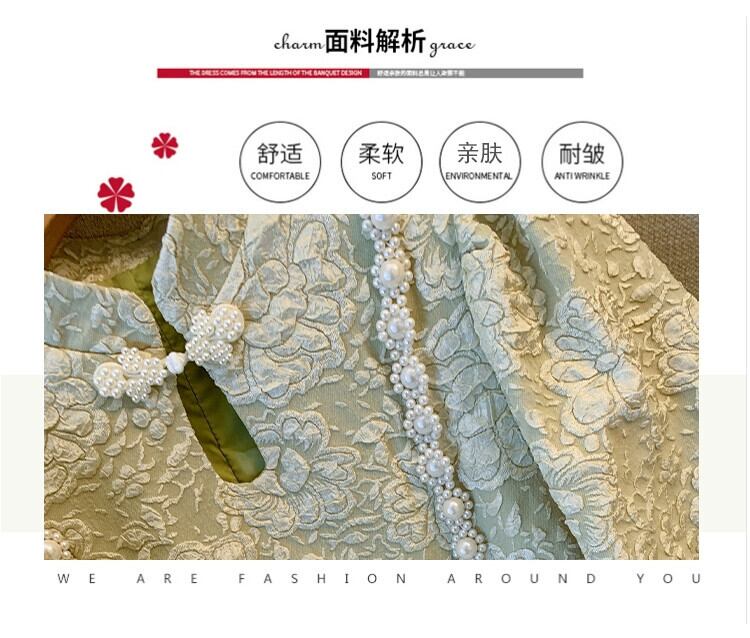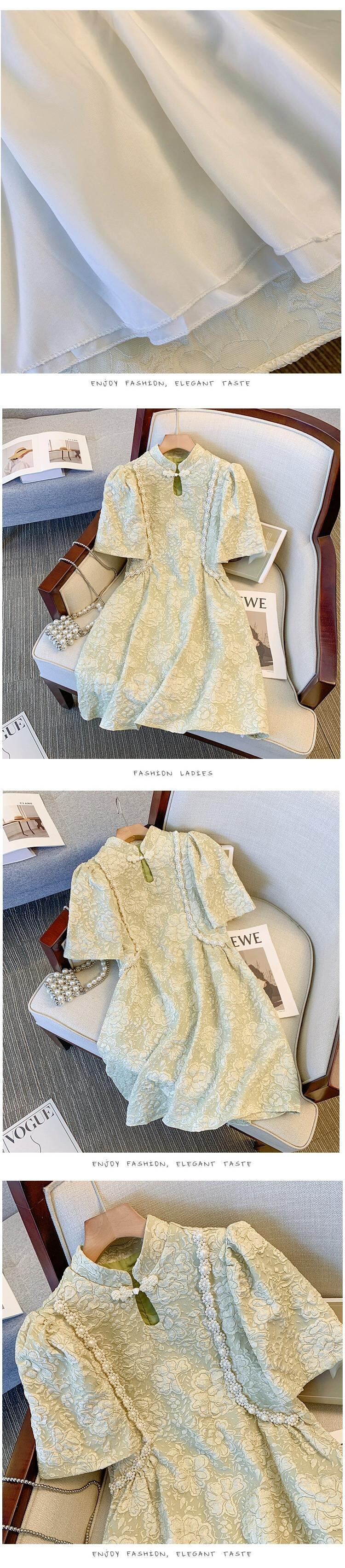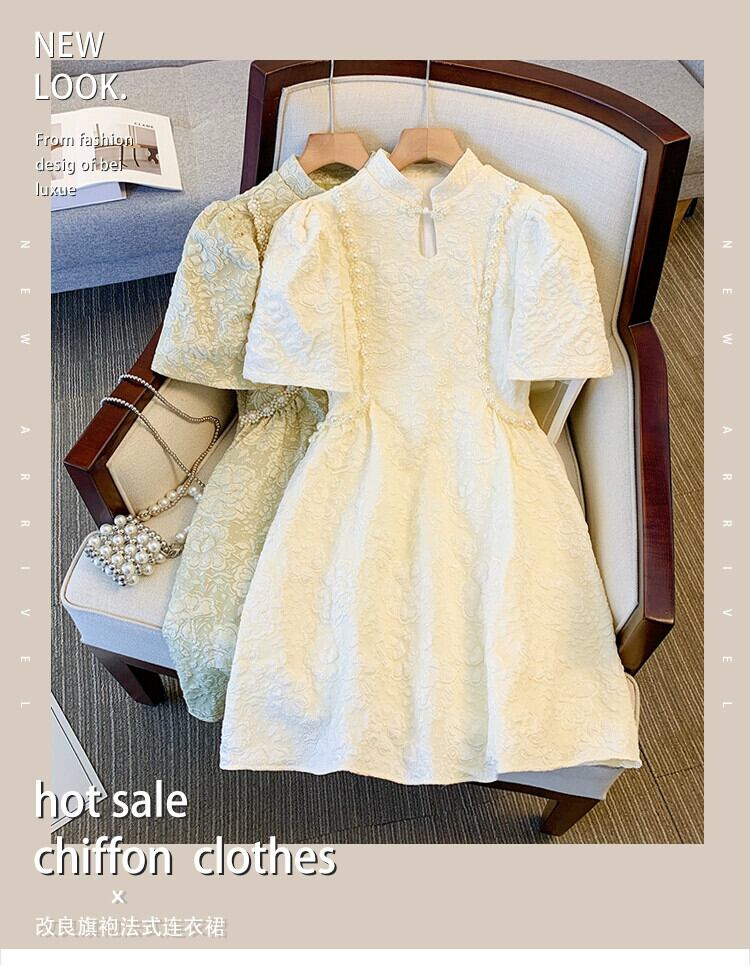 プラスサイズの婦人服 2023 ファットシスター夏新 A ラインスカートニッチ年齢軽減スリムフィットチャイナドレス気質ドレス 大きめサイズ サマー 夏物 Aライン 8884119666175479