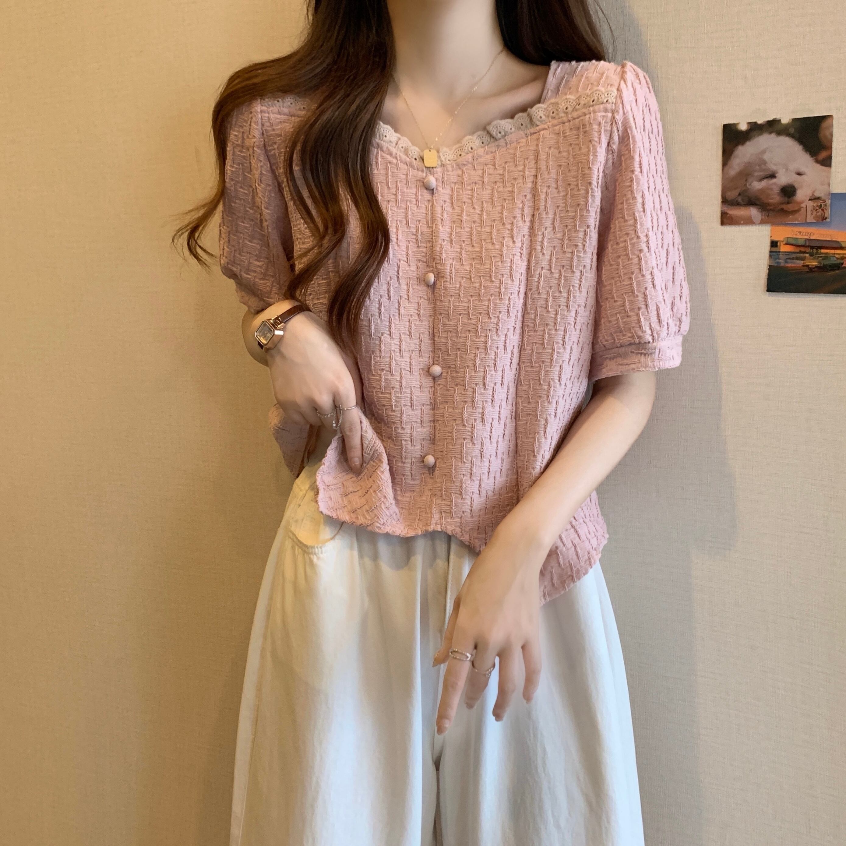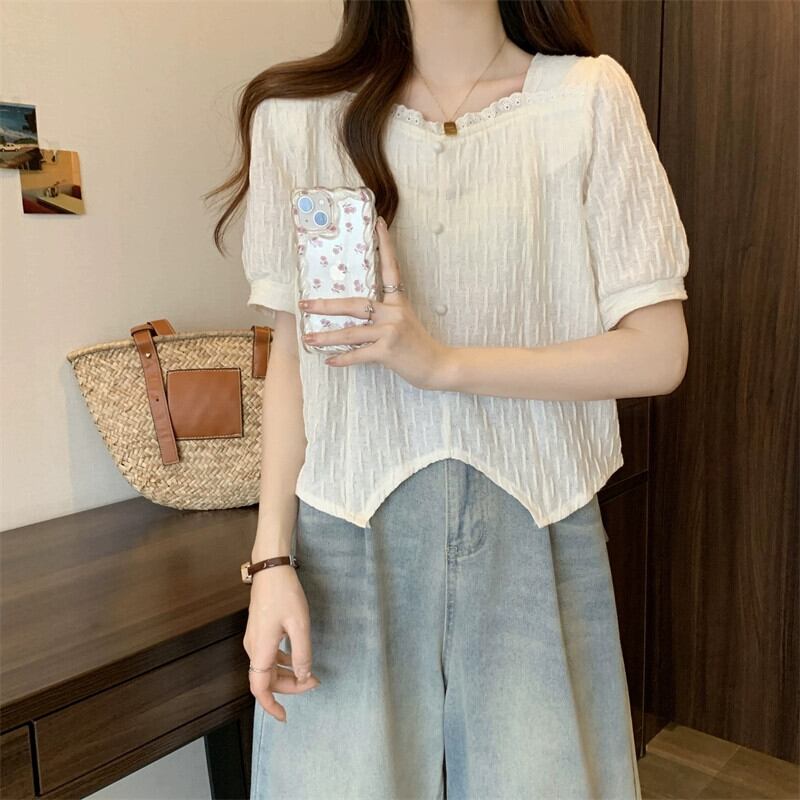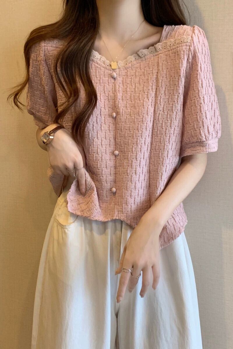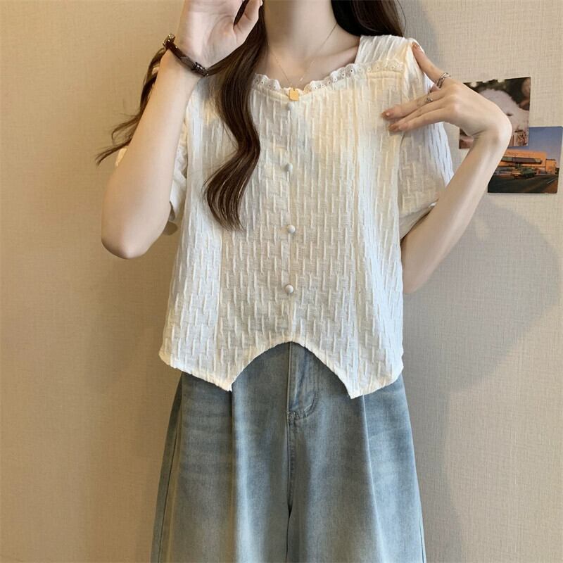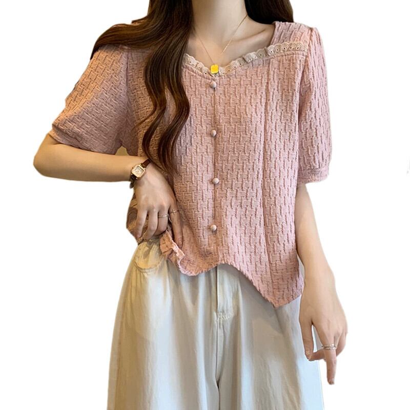 レディース 夏服、太っちょお姉さん、フレンチ風、シック、薄手、無地シャツ、シャツ、Tシャツ、お腹カバー、半袖トップス、トレンド サマー 夏物 ソリッドカラー 8884199625842219