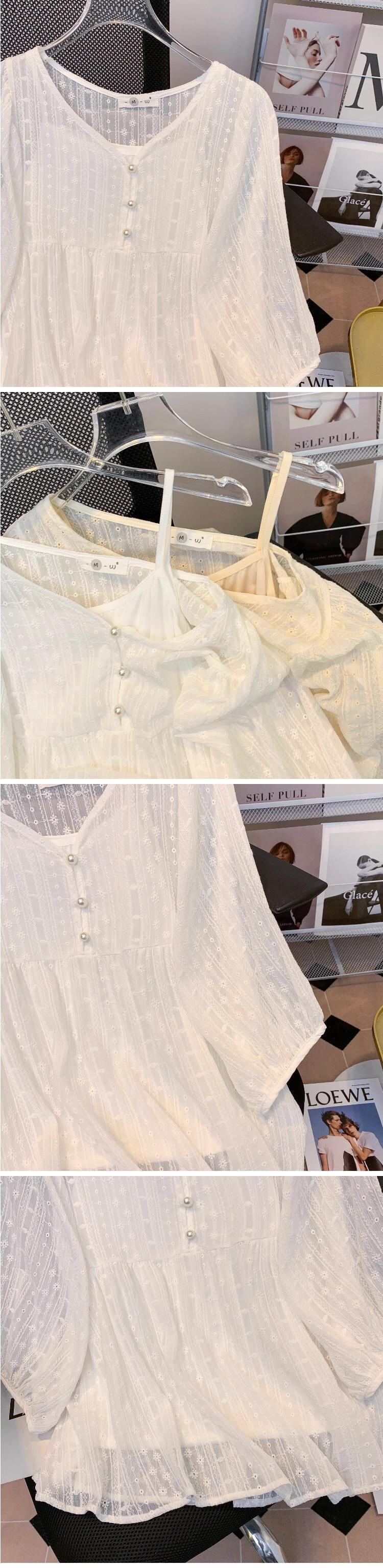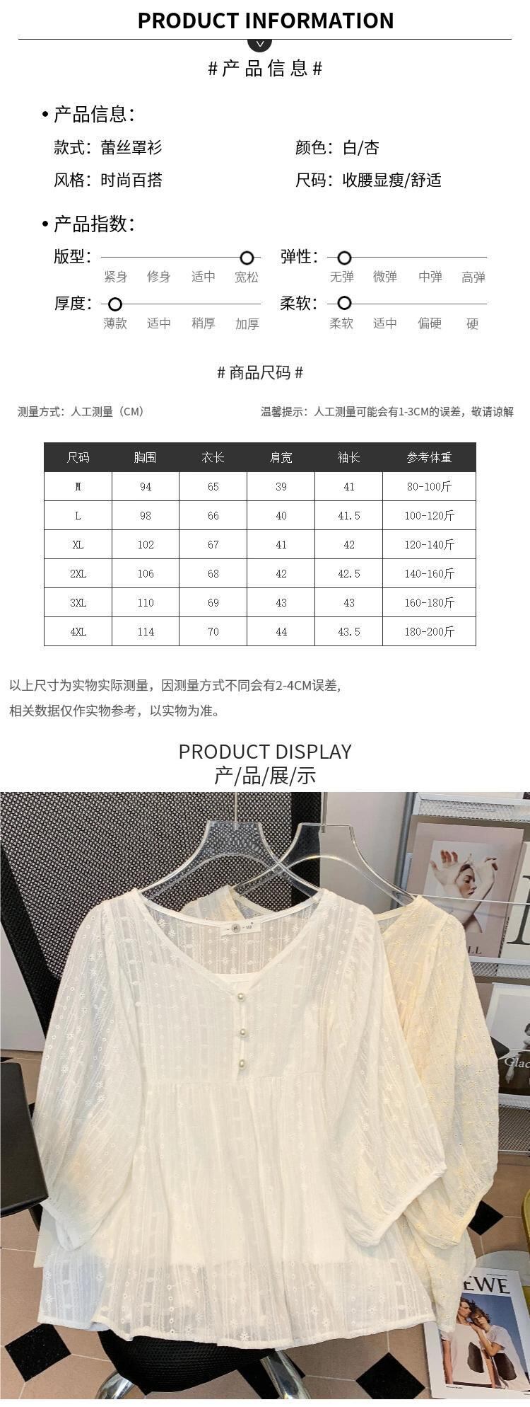 プラスサイズの女性のファットシスターサマーシャツドールシャツツーピーススーツフレンチシックなシフォンシャツシャツトップ 大きめサイズ 夏物 8884122004165178