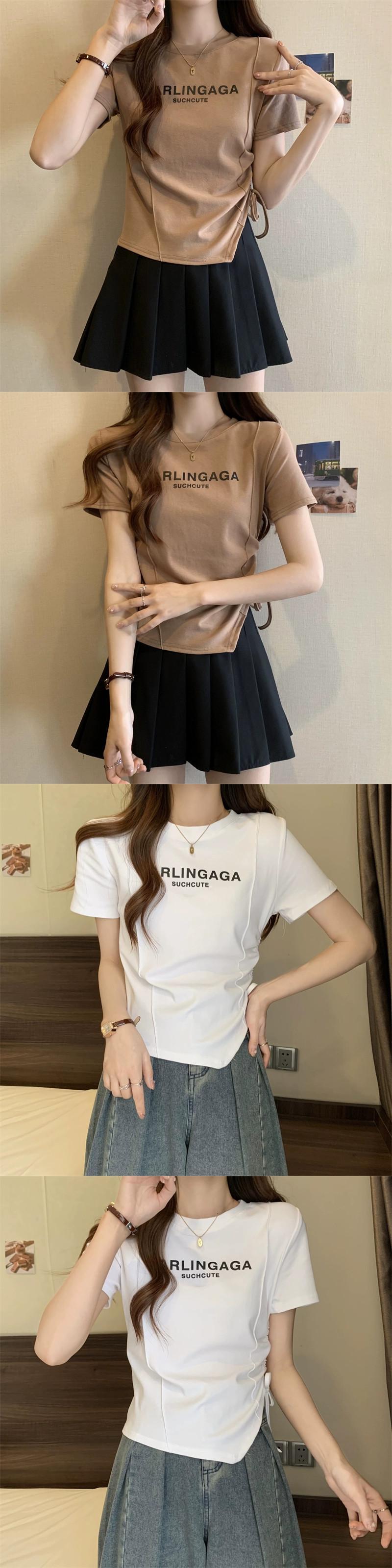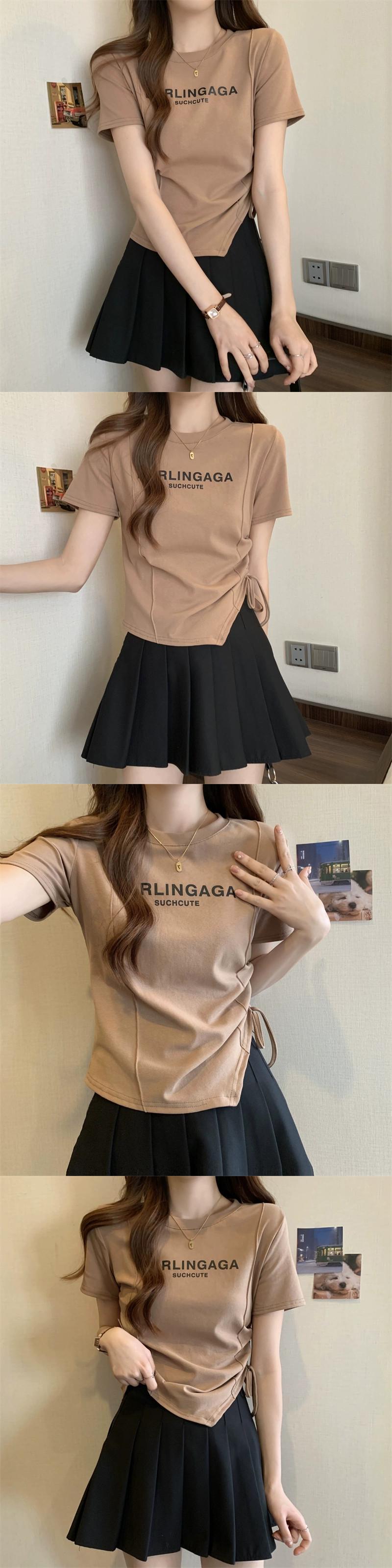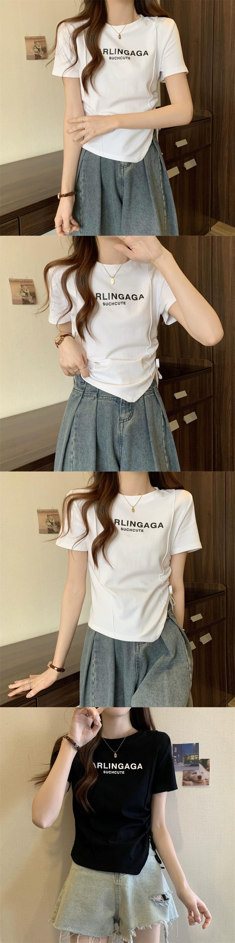プラスサイズの婦人服 2023 夏の新ファットシスターファッションオールマッチ巾着デザインラウンドネック半袖トップ女性 大きめサイズ サマー 夏物 Oネック 888412167629603