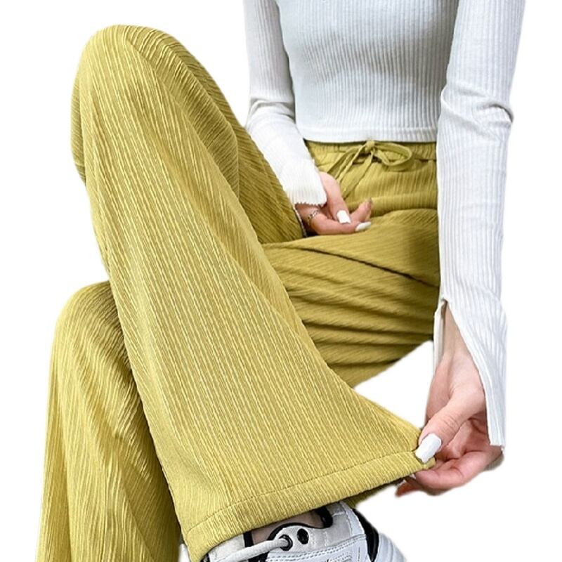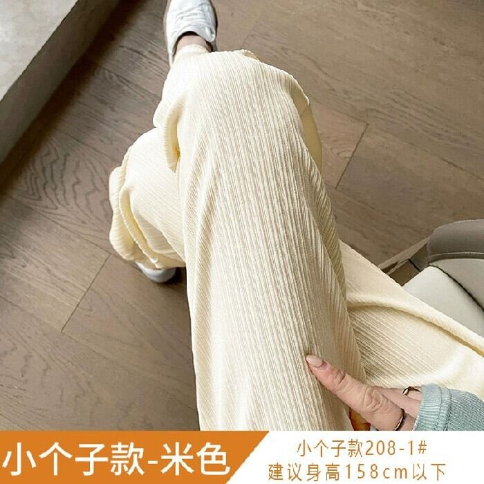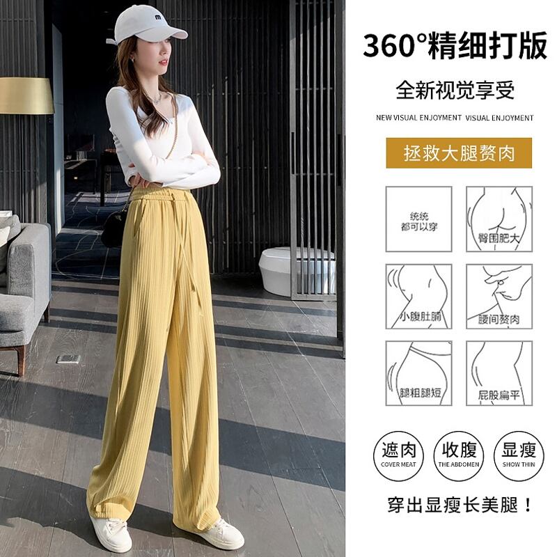 プラスサイズの婦人服 2023 春服ファットシスターズ新しいアイスシルクワイドレッグパンツルーズハイウエストドレープ薄い床モップパンツ ハイウェスト 大きめサイズ スプリング 春物 8884175333237854