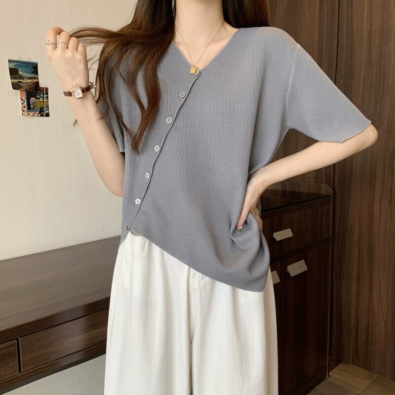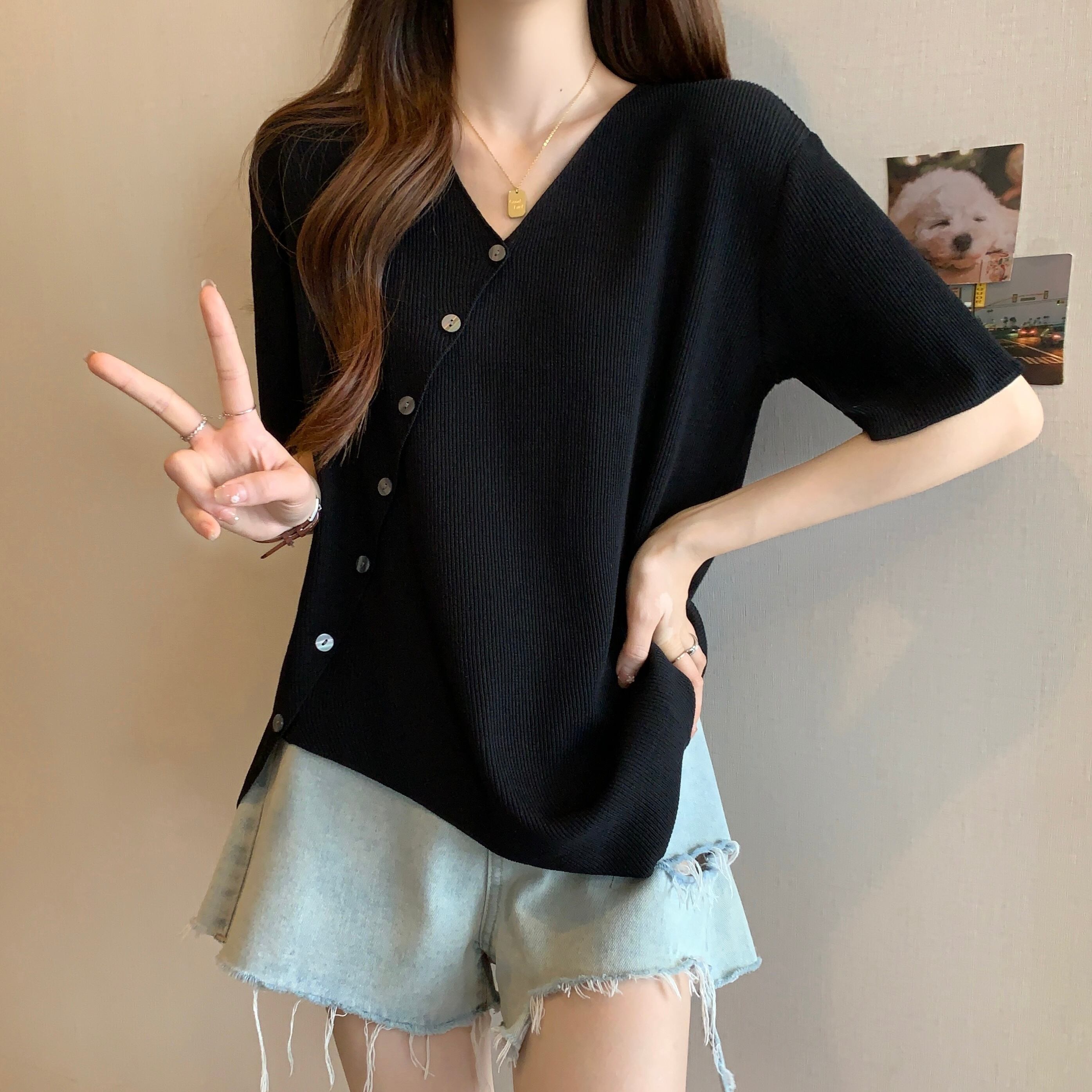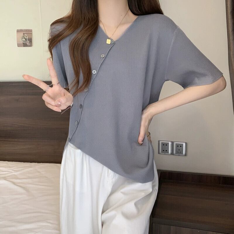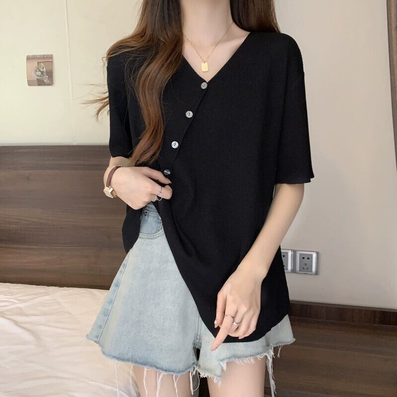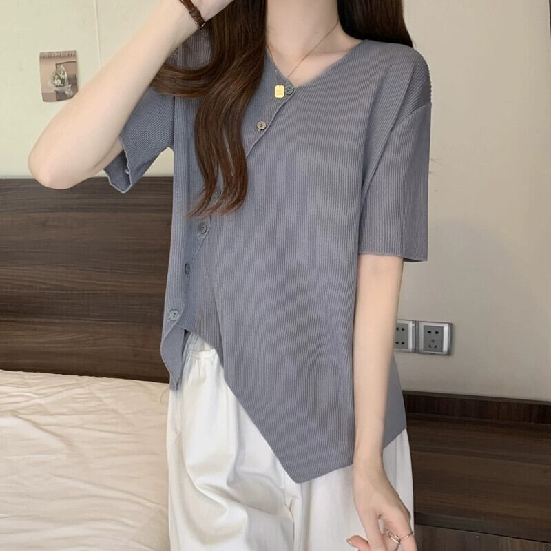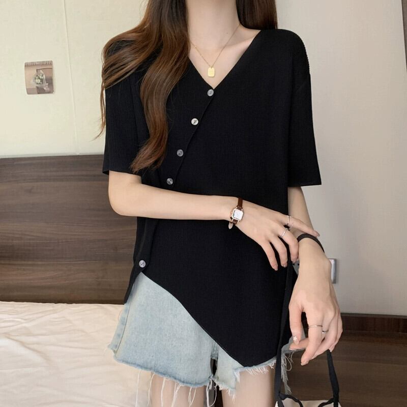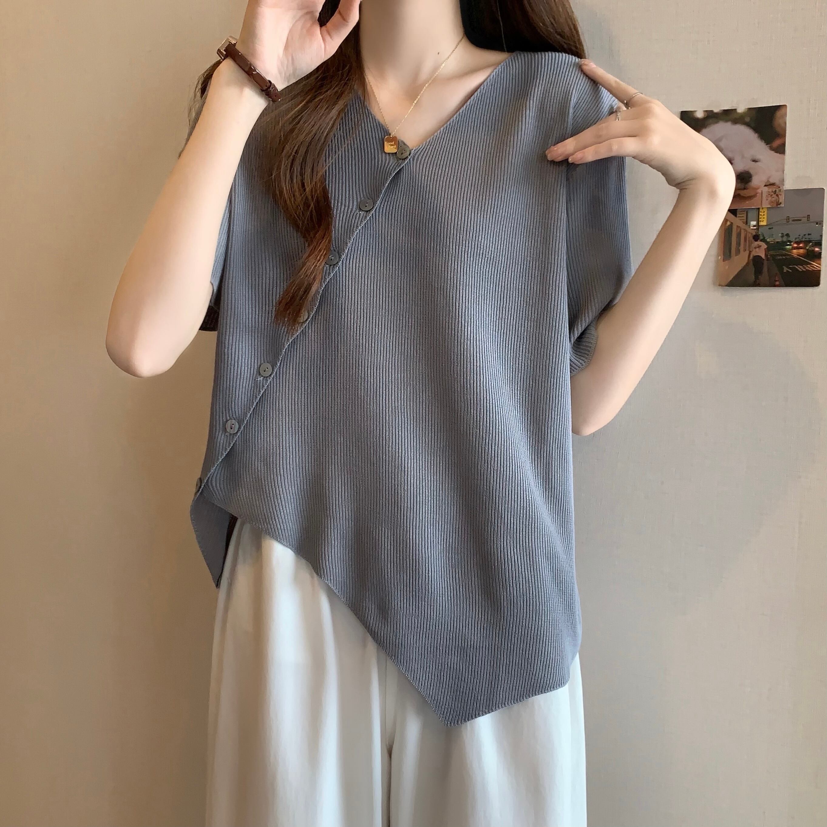 大きいサイズの女性の夏服、太った妹、不規則なデザイン、半袖の気質のトップス、少人数、お腹を覆う薄いTシャツの流行 大きめサイズ サマー 夏物 8884153137262034