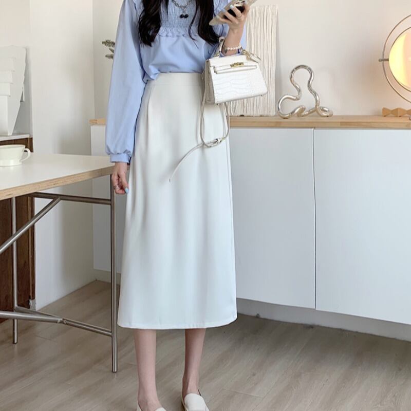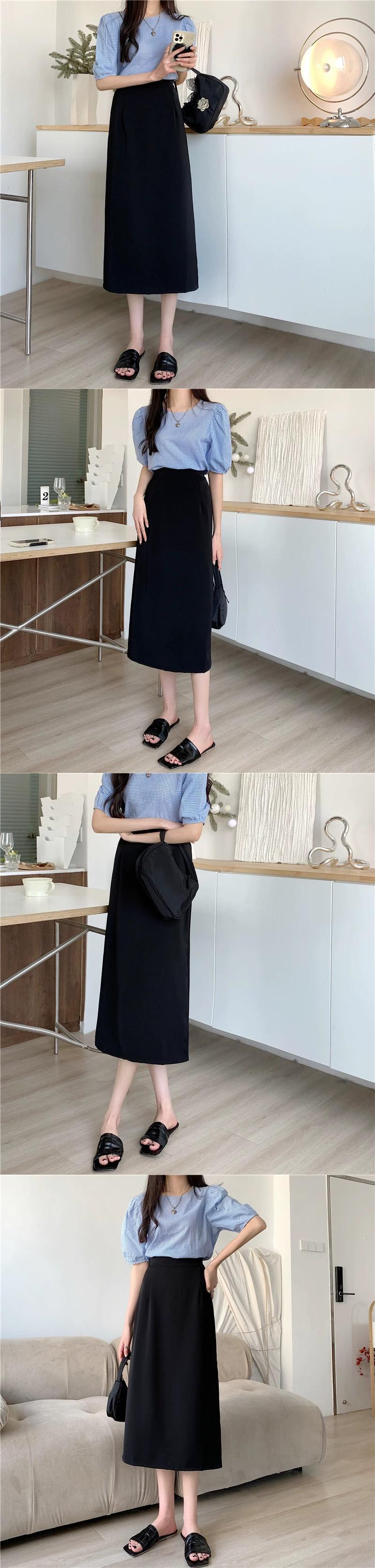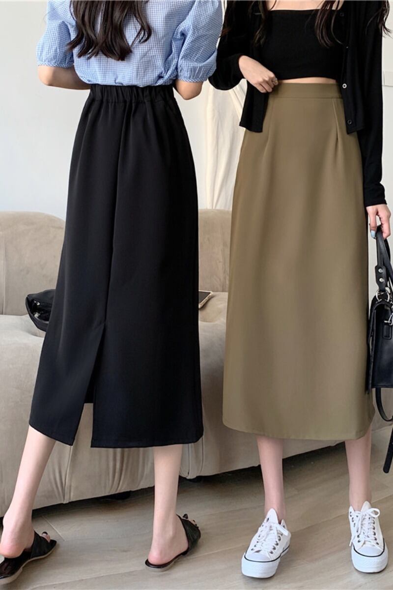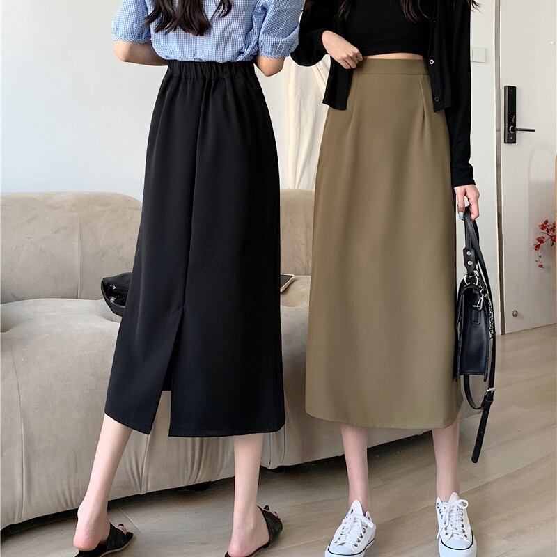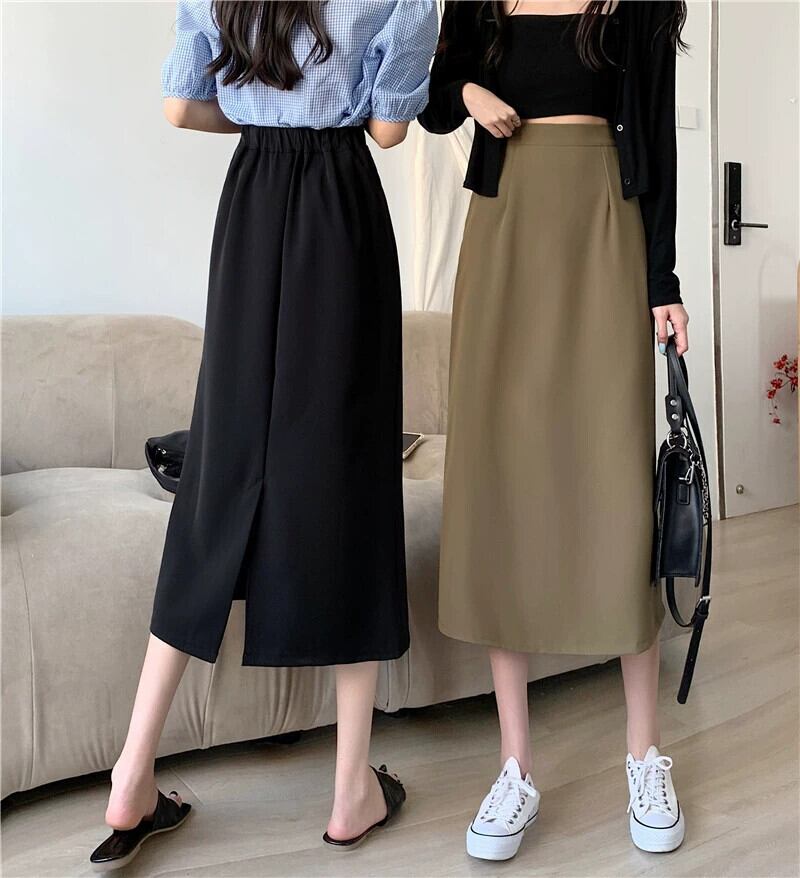 プラスサイズの婦人服 2023 夏新作ファットシスターハイウエスト痩身デザインのスリット感とドレープヒップカバースカート ハイウェスト 大きめサイズ サマー 夏物 8884118258401111