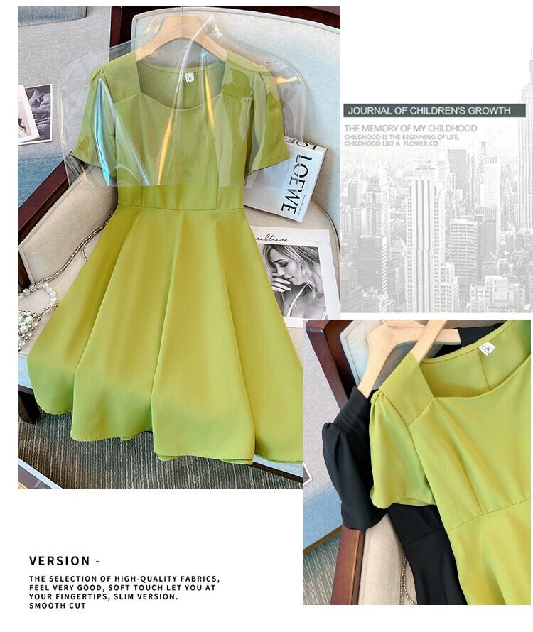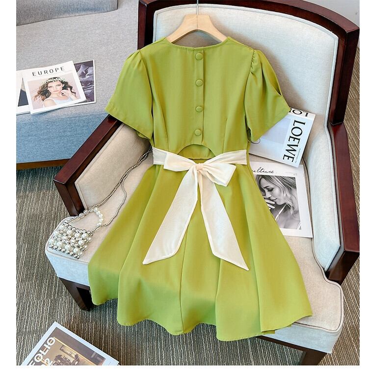 プラスサイズの婦人服 2023 脂肪姉妹夏の新しい痩身デザインウエストリボンフレンチドレス女性 大きめサイズ サマー 夏物 8884156084084994