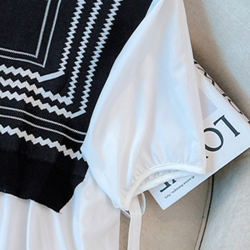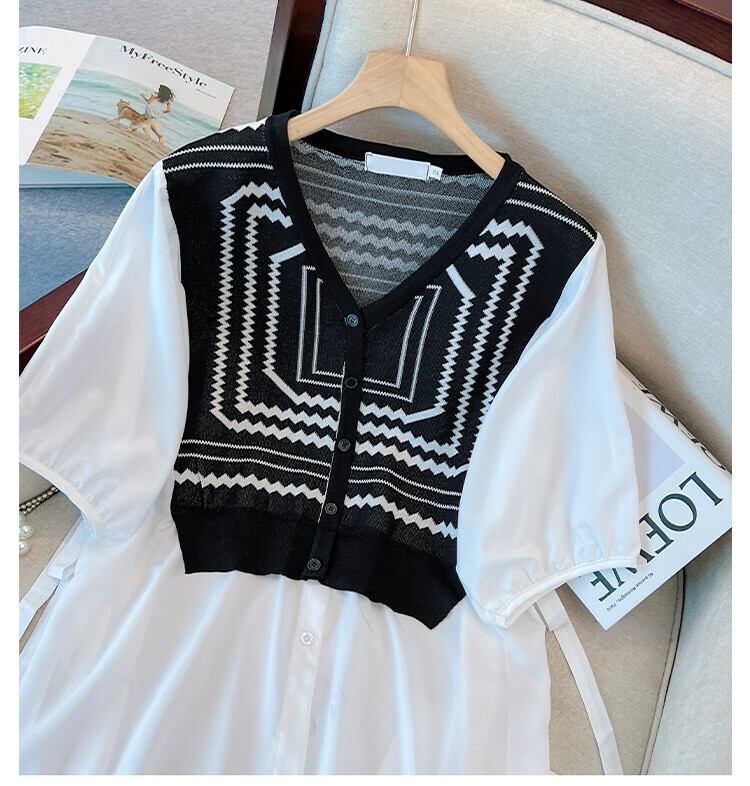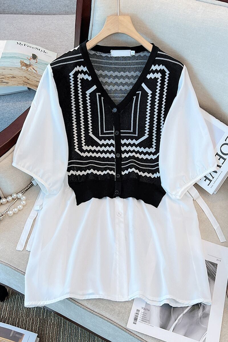 大きいサイズの婦人服 2023 夏の新しい脂肪姉妹バージョン緩い気質薄い偽ツーピーススプライシングシャツ女性 大きめサイズ サマー 夏物 8884143105219442