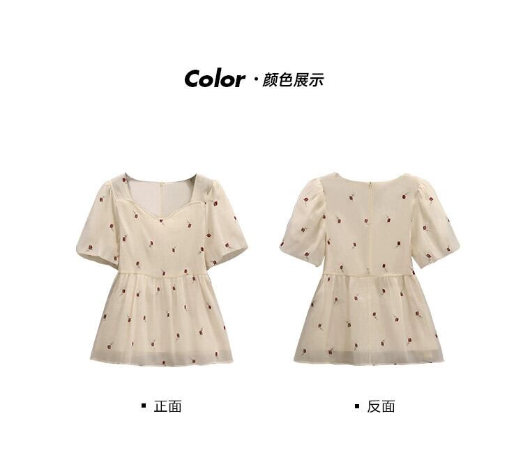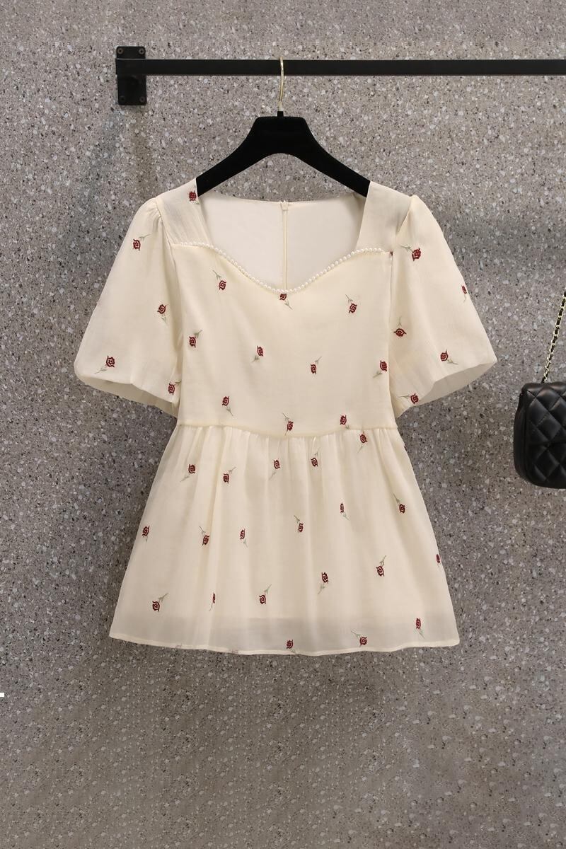 プラスサイズの婦人服 2023 脂肪姉妹夏の新ファッション年齢を軽減する eign スタイル刺繍半袖スクエアネック気質トップ 大きめサイズ サマー 夏物 スクウェア 8884125314308538