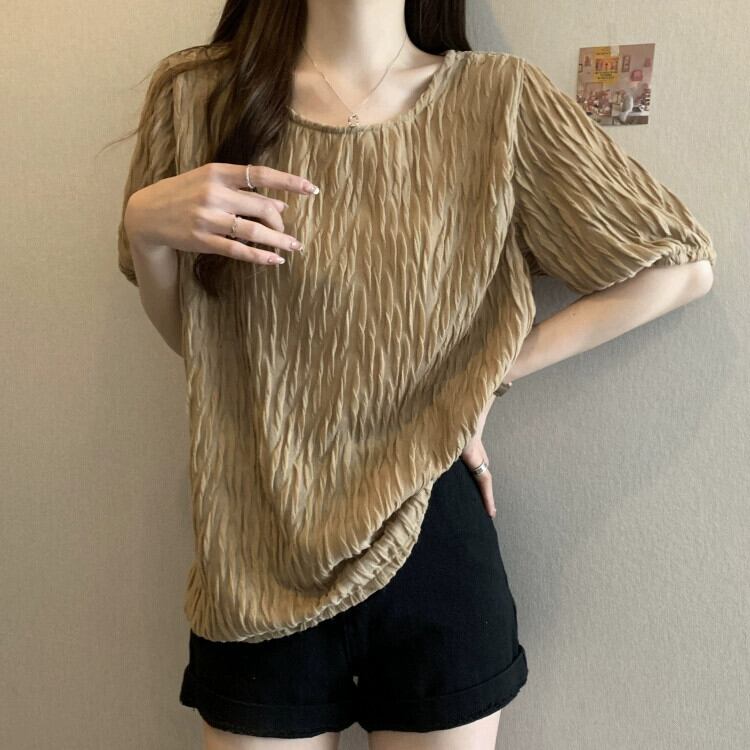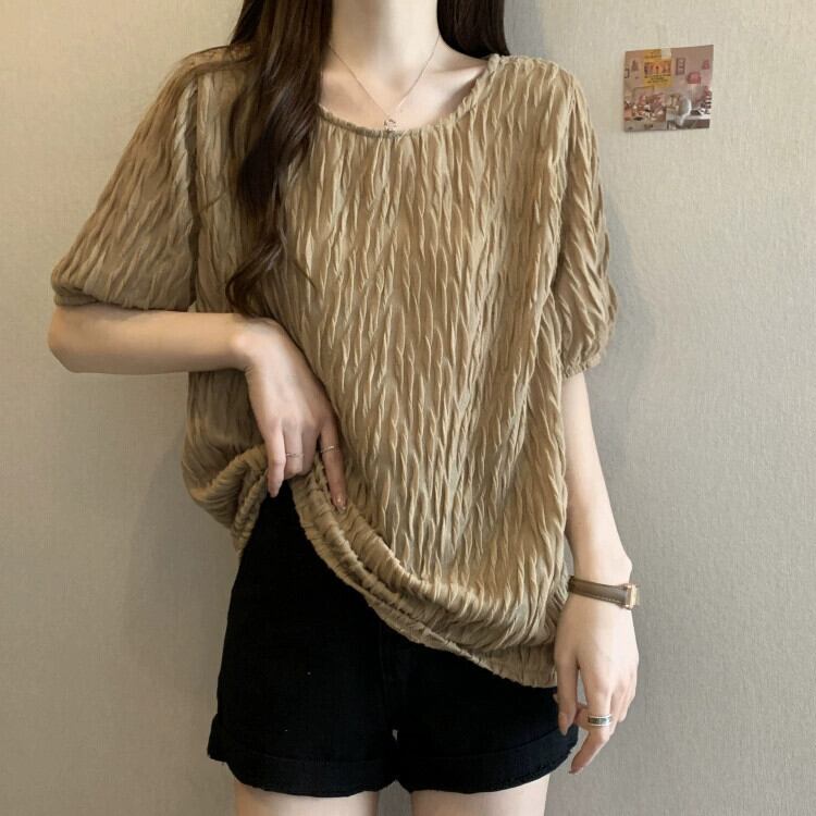 プラスサイズの婦人服 2023 新しい夏服太った姉妹は、肉感をゆったりとカバーし、薄い半袖 T シャツを見せてトップス女性 大きめサイズ サマー 夏物 Tシャツ 8884169705528630