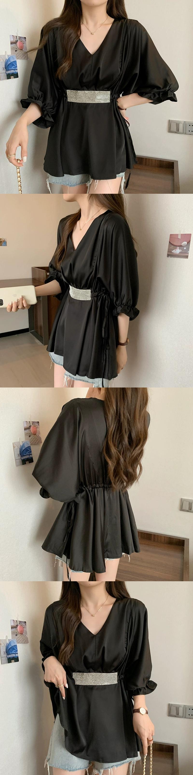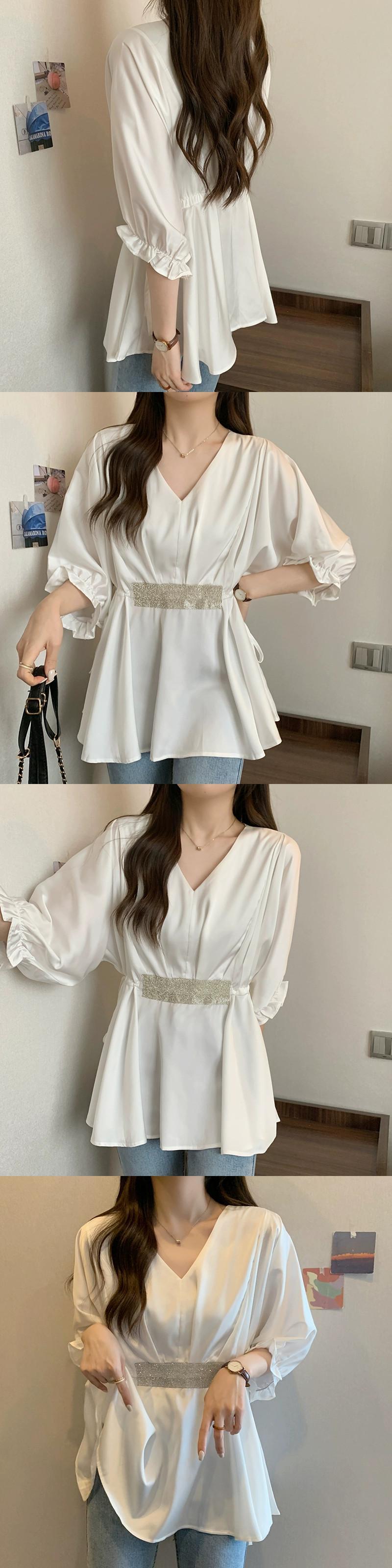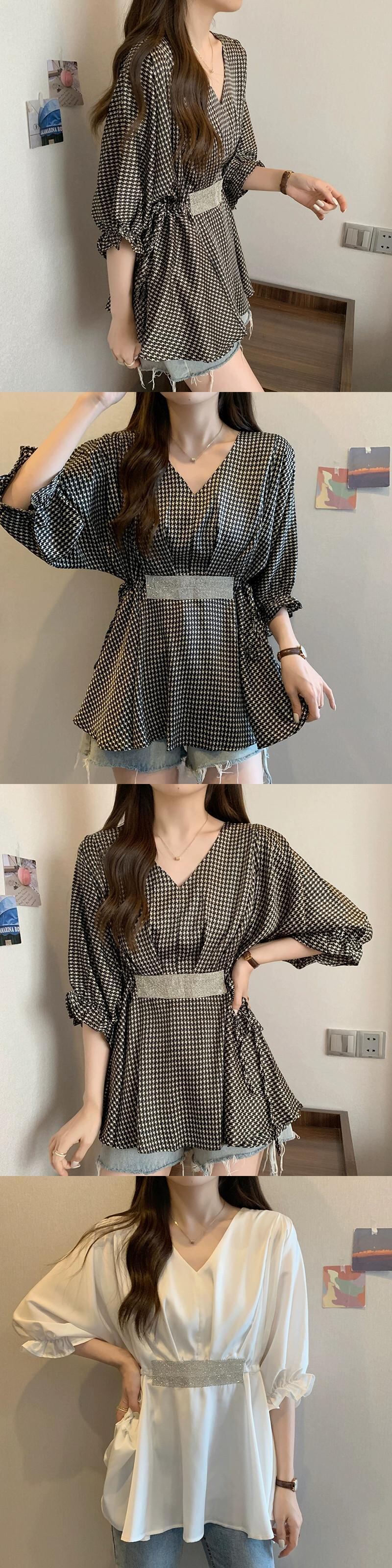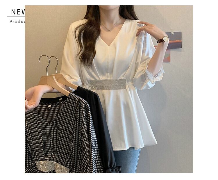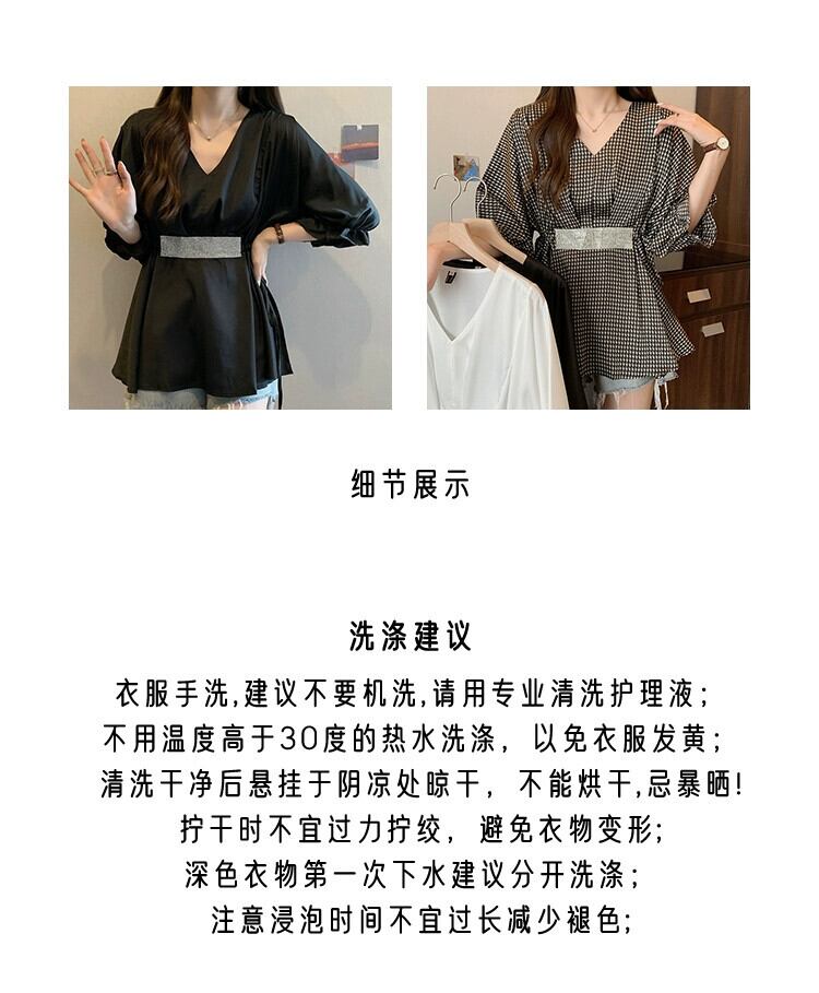 プラスサイズの婦人服 2023 太った妹の夏の新しいファッション V ネックウエストトップス年齢を軽減し、薄いウエスタン スタイル シャツ 大きめサイズ サマー 夏物 Vネック 8884180076501152