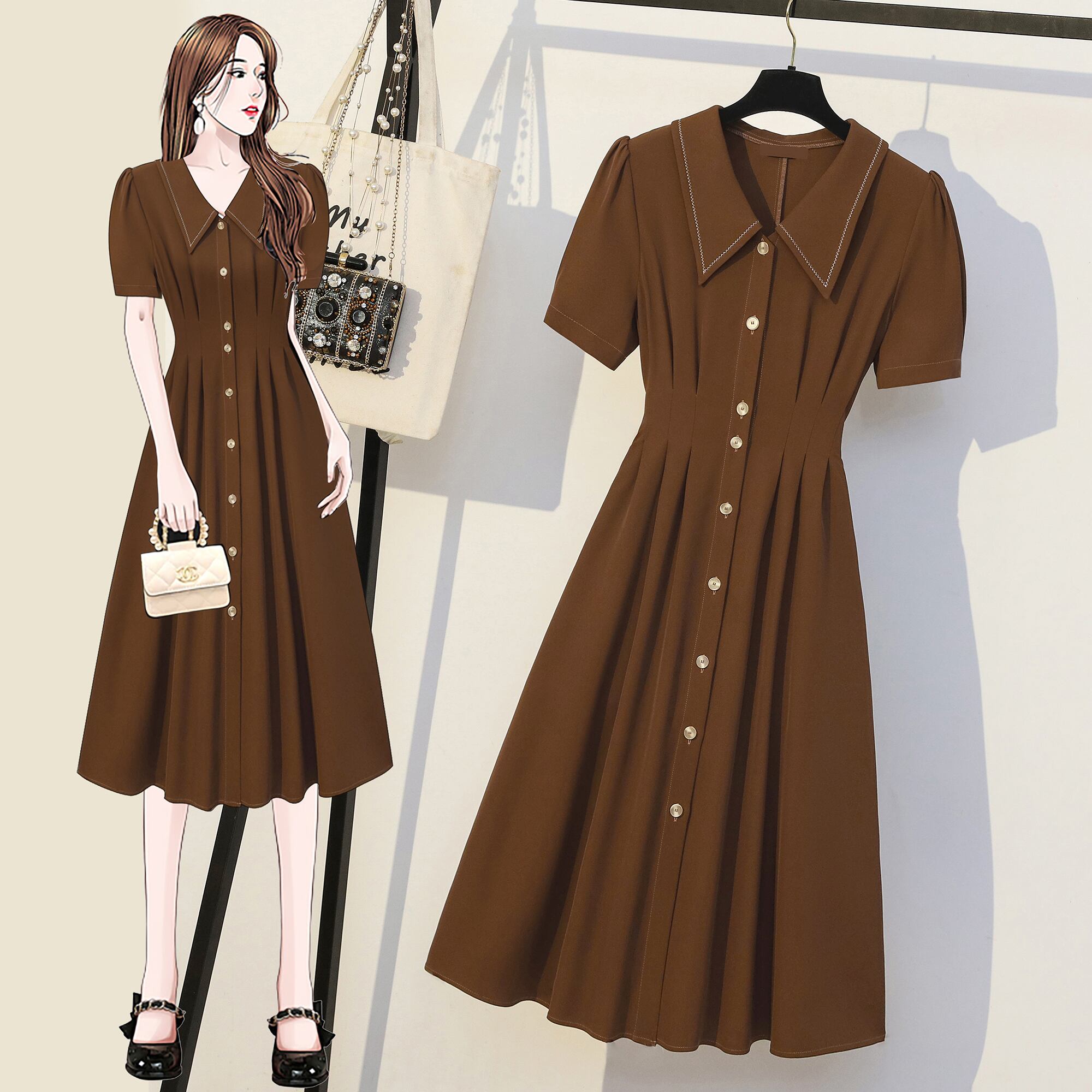 プラスサイズの婦人服 2023 夏の新しい脂肪姉妹ミッドレングススタイルスリムで肉を覆う気質デザインドレス女性 大きめサイズ サマー 夏物 8884163517493021