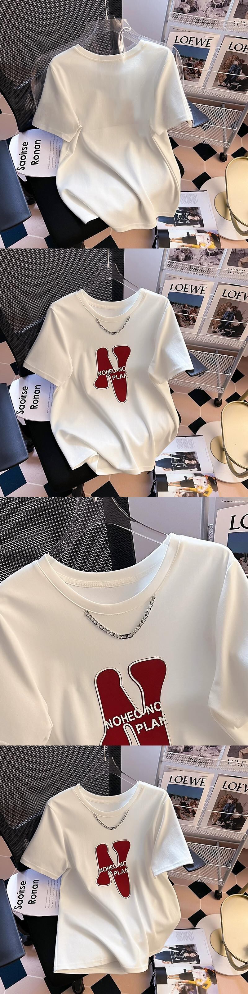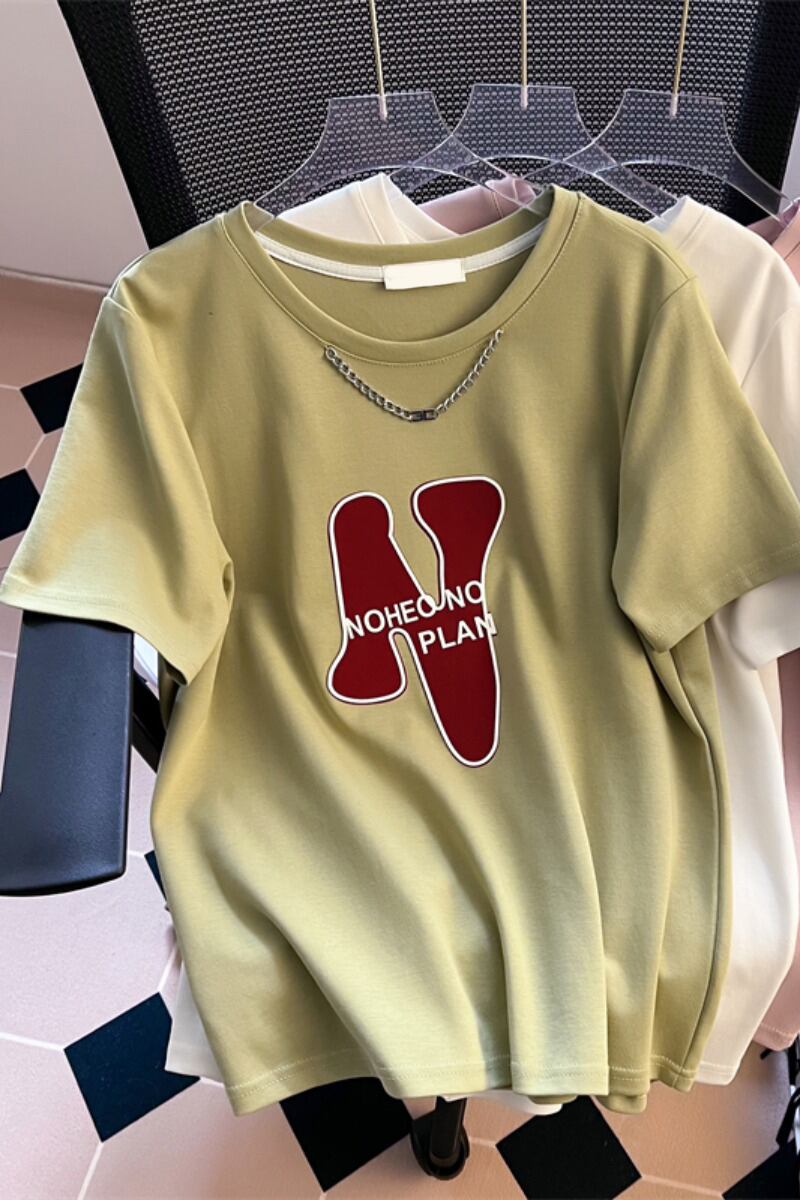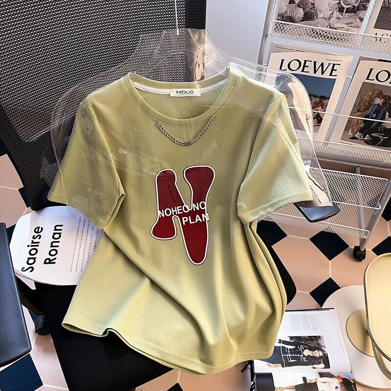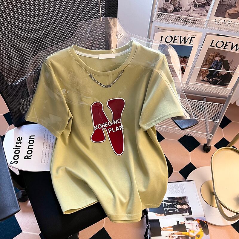 プラスサイズの婦人服 2023 夏の新ファットシスター年齢軽減デザインセンスリンクラウンドネック半袖カジュアルトップ女性 大きめサイズ サマー 夏物 Oネック 8884136601039928