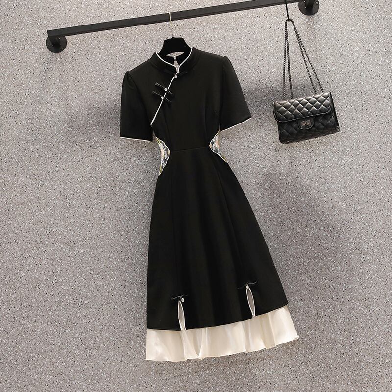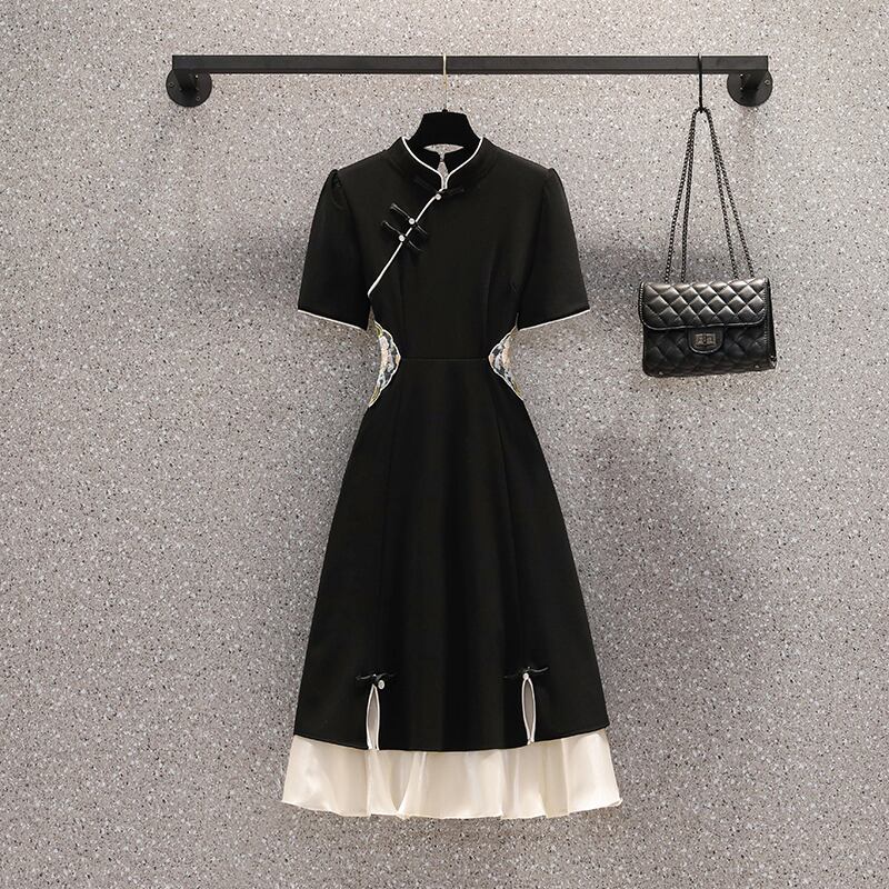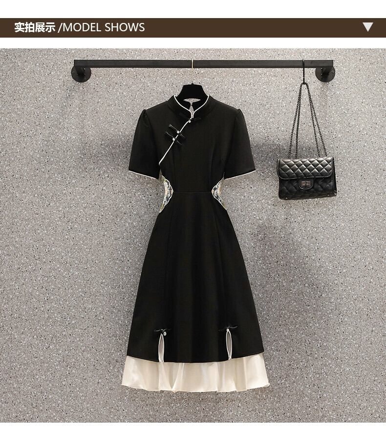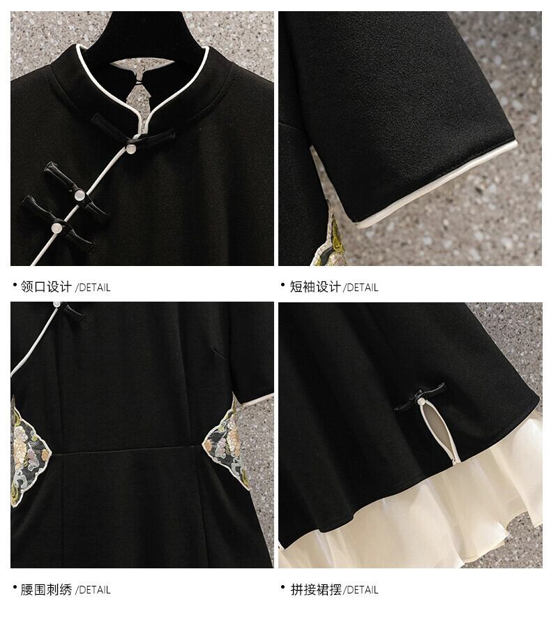 プラスサイズの婦人服 2023 脂肪姉妹夏新レトロスプライシング痩身半袖チャイナドレス 大きめサイズ サマー 夏物 8884125955776261