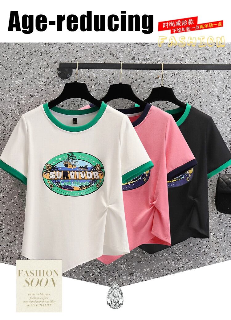 大きいサイズの婦人服 2023 脂肪姉妹夏の新しいファッション不規則な裾プリント半袖 Tシャツトップ女性 大きめサイズ サマー 夏物 8884170506992716
