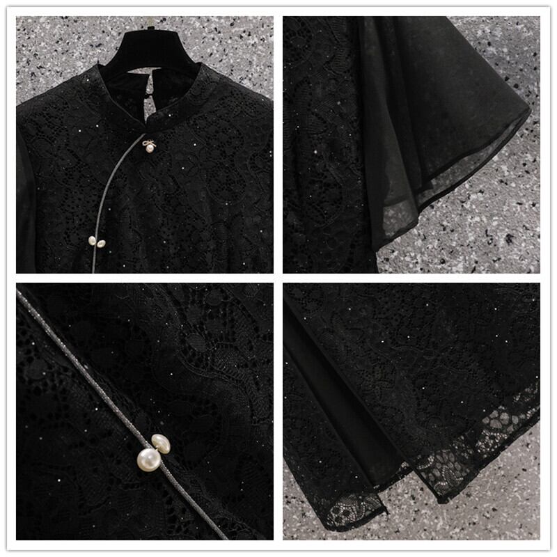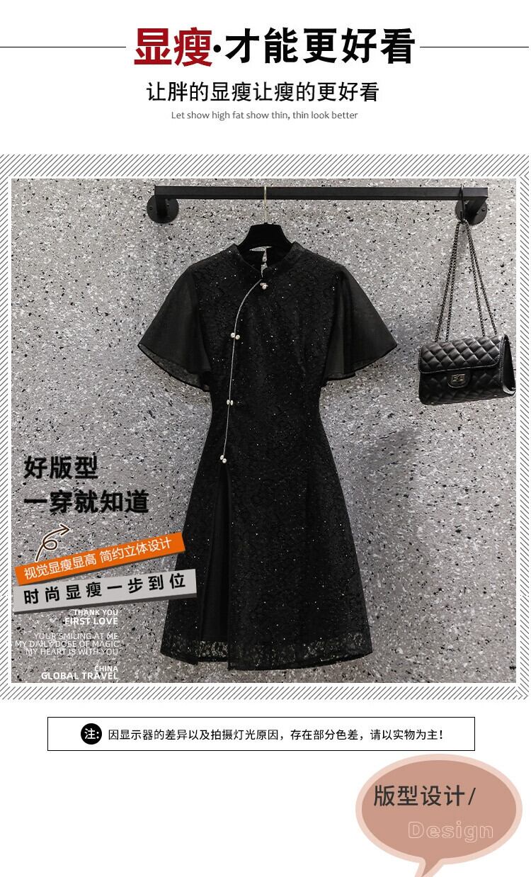 大きいサイズの婦人服 2023 脂肪姉妹夏新レトロ重工業レース気質薄いチャイナドレス女性 大きめサイズ サマー 夏物 8884180034906103