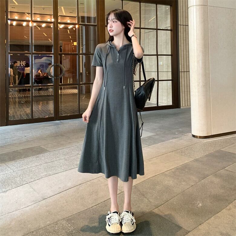 プラスサイズの婦人服 2023 夏の新しい脂肪姉妹バージョン自己修養スリムフード付き気質年齢を減らすドレス女性 大きめサイズ サマー 夏物 8884139714468267