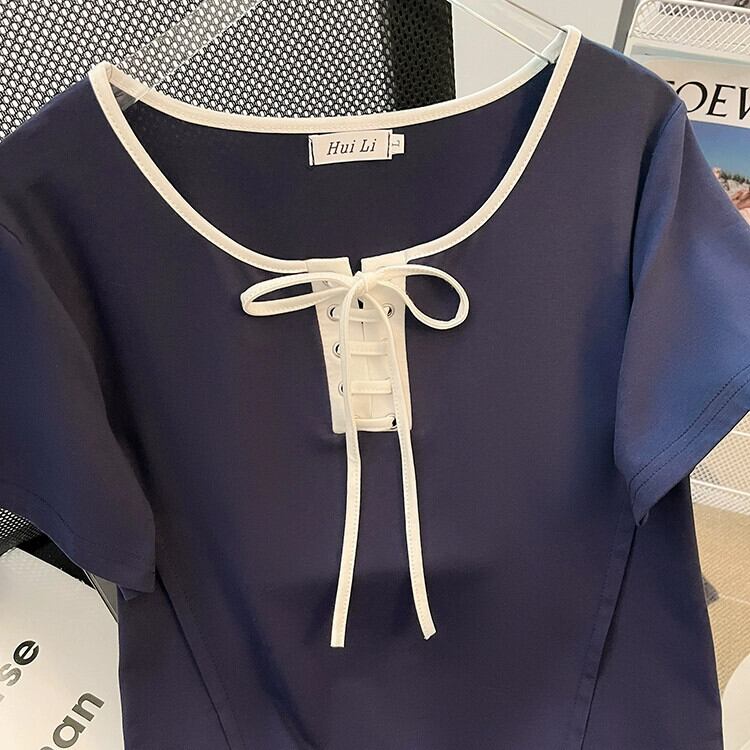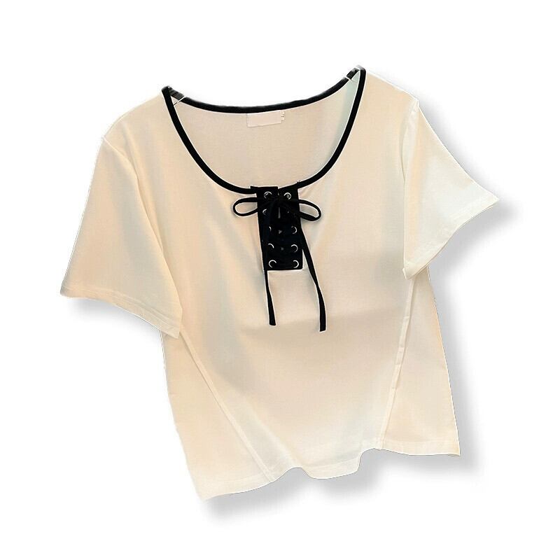 プラスサイズの婦人服 2023 夏の新ファットシスターフレンチストラップオールマッチアインスタイル半袖カジュアル Tシャツトップ 大きめサイズ サマー 夏物 8884195292339639