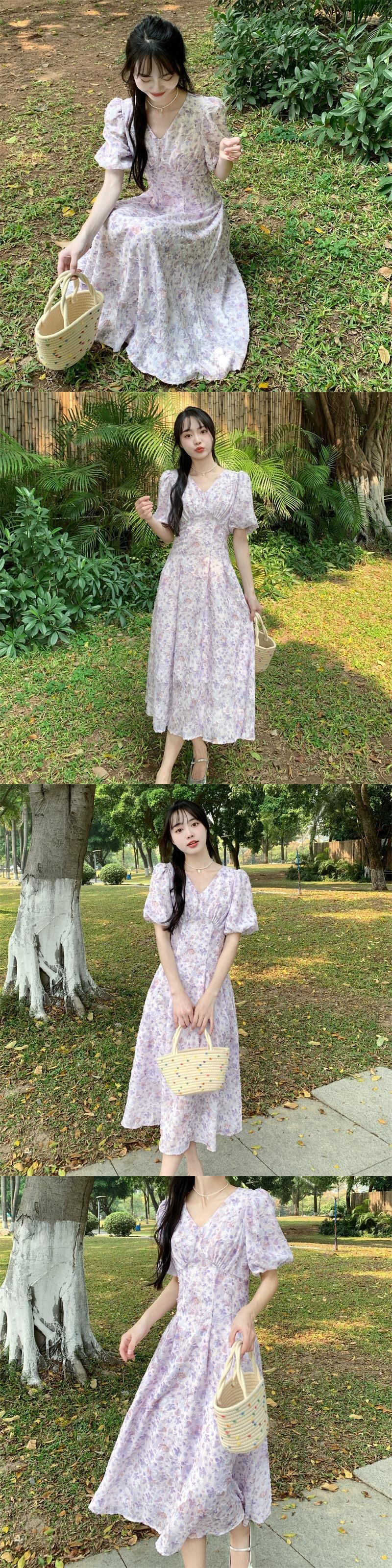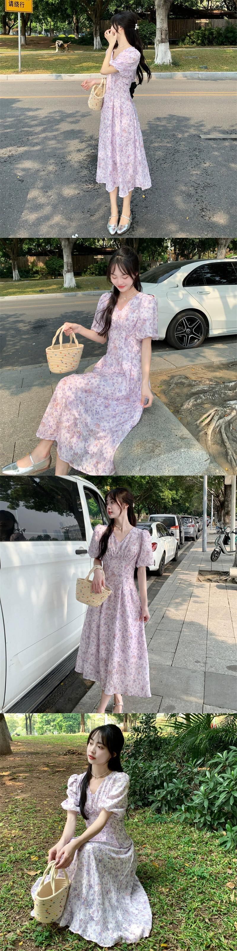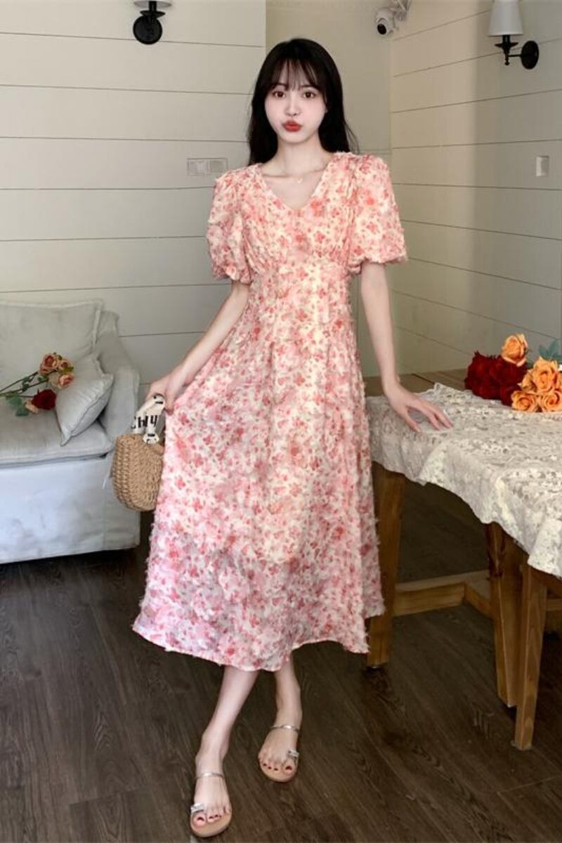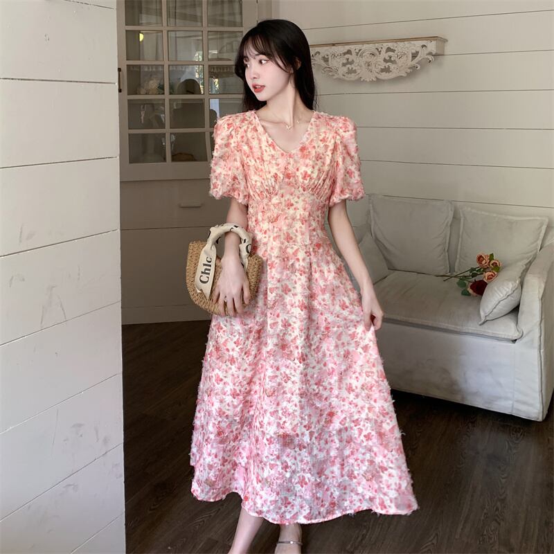 プラスサイズの婦人服 2023 脂肪姉妹夏新フレンチスタイルハイウエスト痩身小さな新鮮な甘い花柄ドレス ハイウェスト 大きめサイズ 大人ガーリー スウィート キュート カジュアル サマー 夏物 8884133165058207