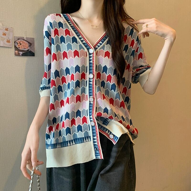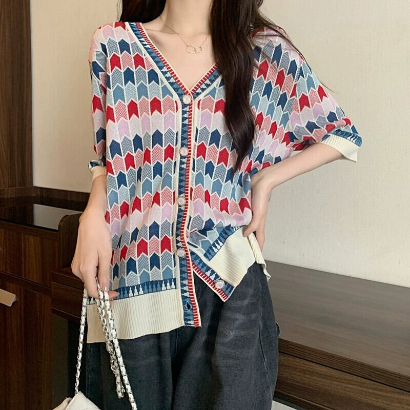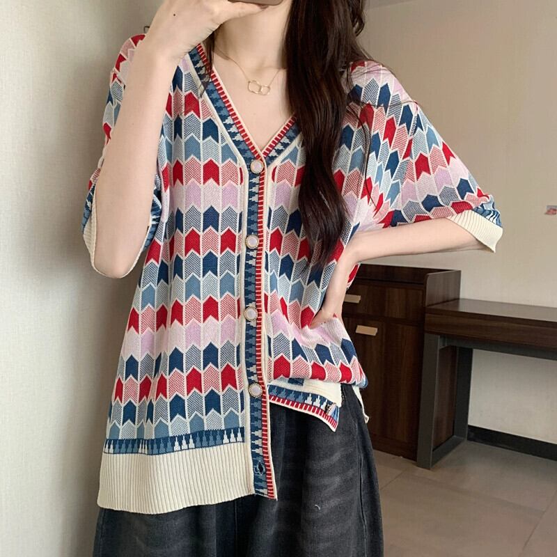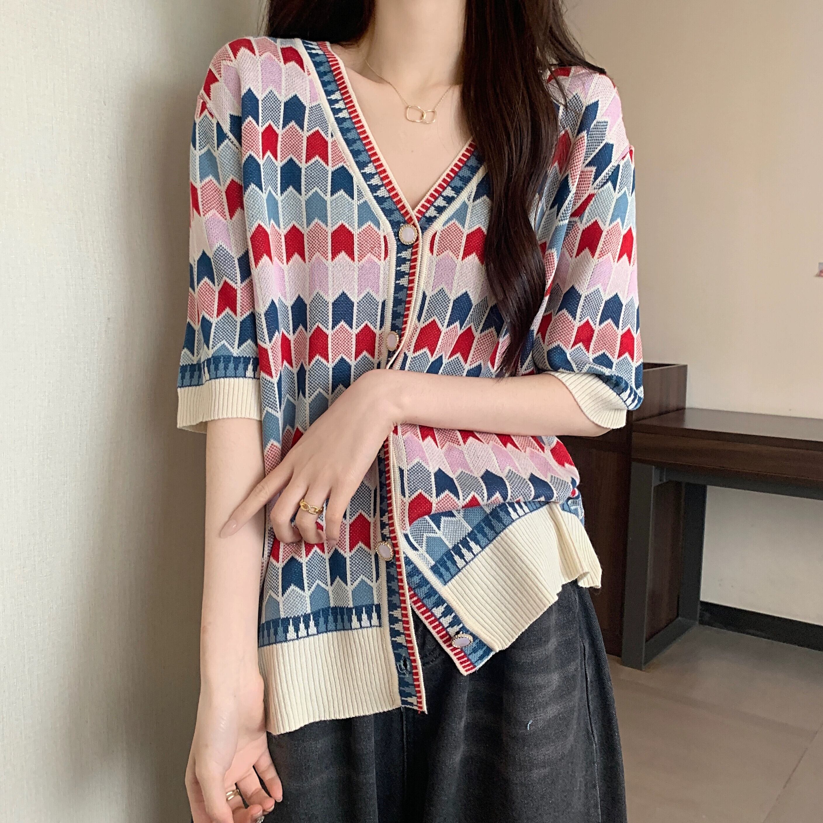 プラスサイズの婦人服 2023 夏服脂肪姉妹年齢削減カーディガンカジュアルニッチトップスカバー腹シックなファッション Tシャツ 大きめサイズ サマー 夏物 8884188731595724