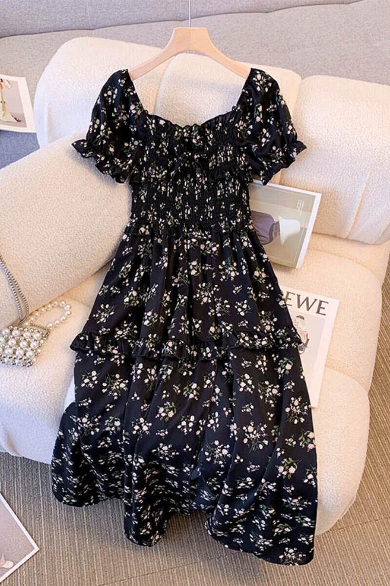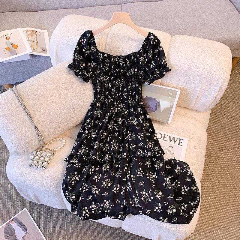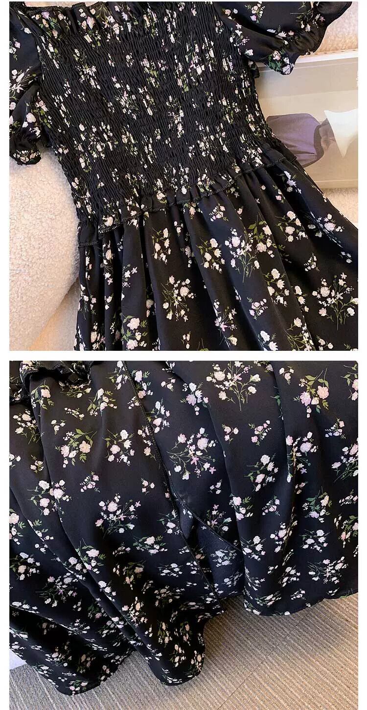 プラスサイズの婦人服 2023 夏の新しい太った妹は薄い花のスリット気質フレンチ ウエスト ドレス女性に見えます 大きめサイズ サマー 夏物 花柄 8884138062754374