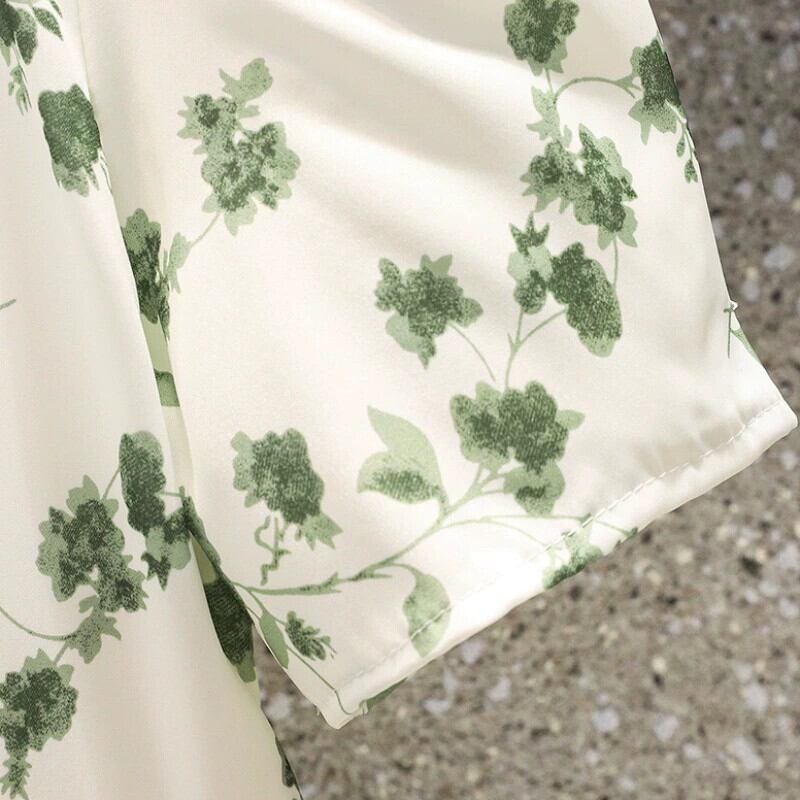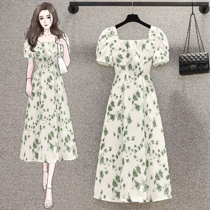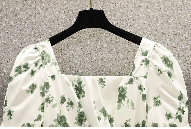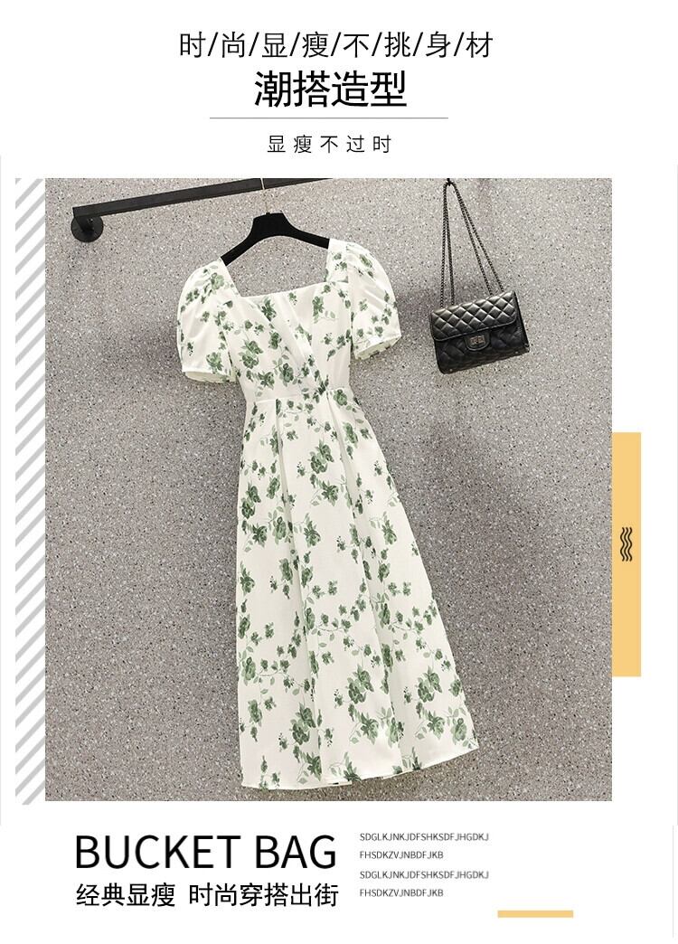 プラスサイズの婦人服 2023 夏の新ファットシスターファッションフレンチパフスリーブ花柄スクエアカラー年齢軽減ドレス 大きめサイズ サマー 夏物 スクウェア 8884134048632811