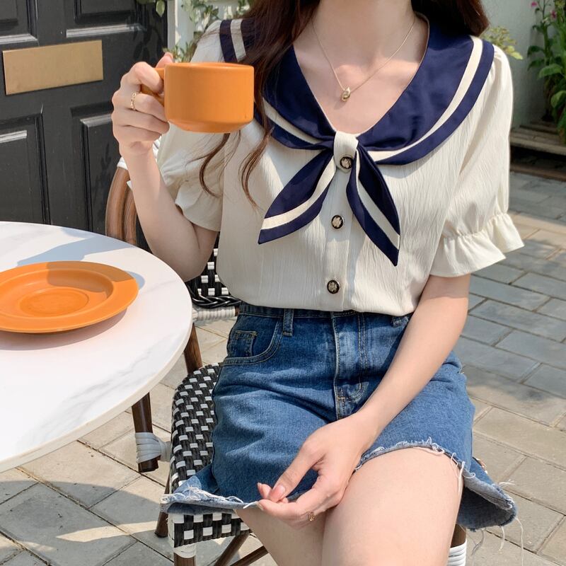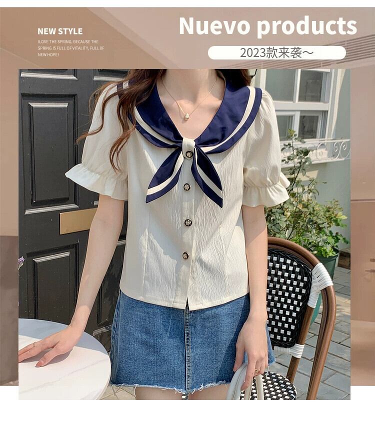 プラスサイズの婦人服 2023 夏の新ファットシスターヒットカラーネイビーカラーカジュアルファッション年齢を軽減し、薄いショートシャツ 大きめサイズ サマー 夏物 8884174771188377