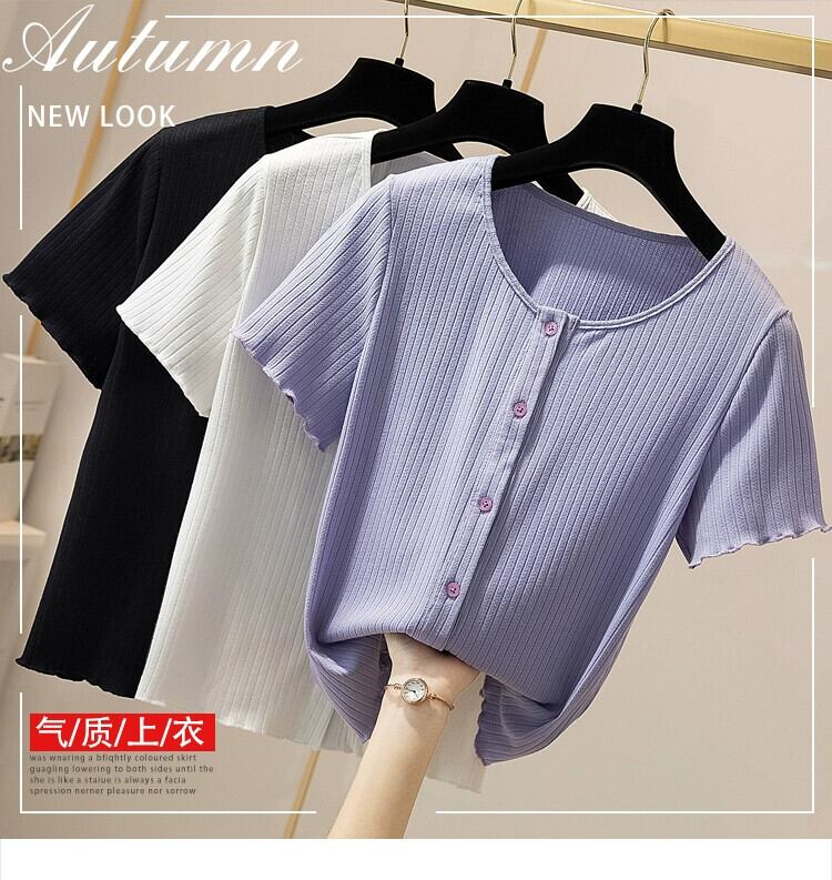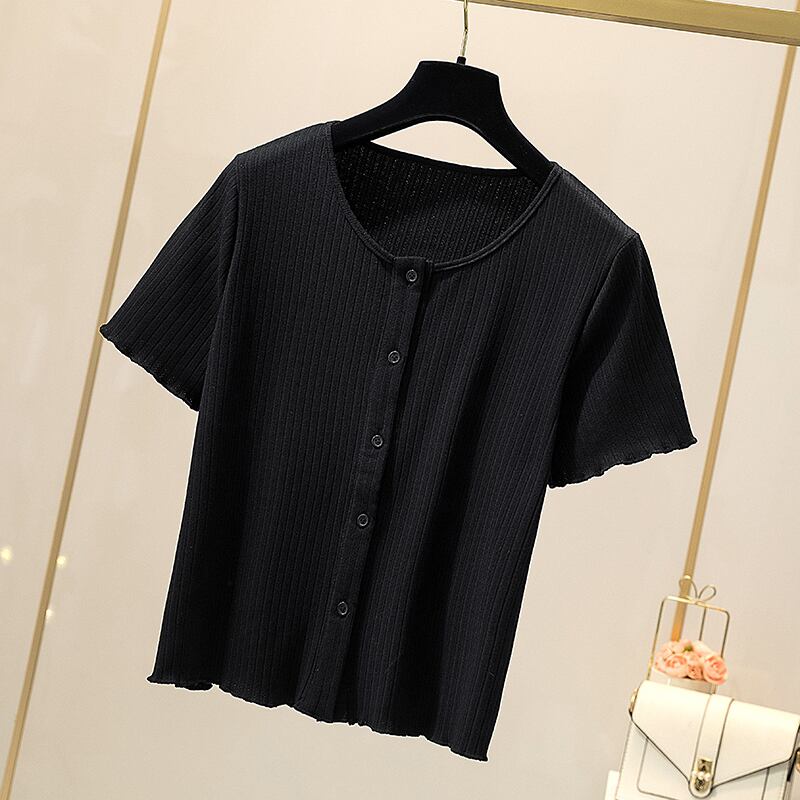 プラスサイズの婦人服 2023 ファットシスター夏新カジュアルオールマッチ無地ショート tシャツニット半袖トップ 大きめサイズ サマー 夏物 ソリッドカラー 8884189811212645