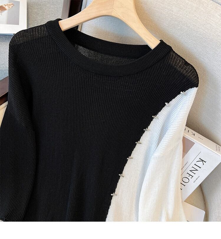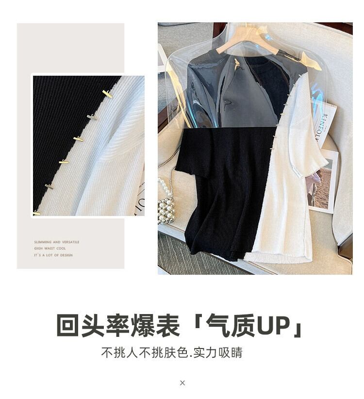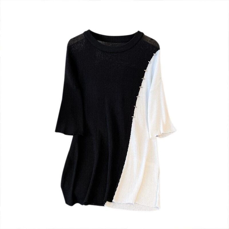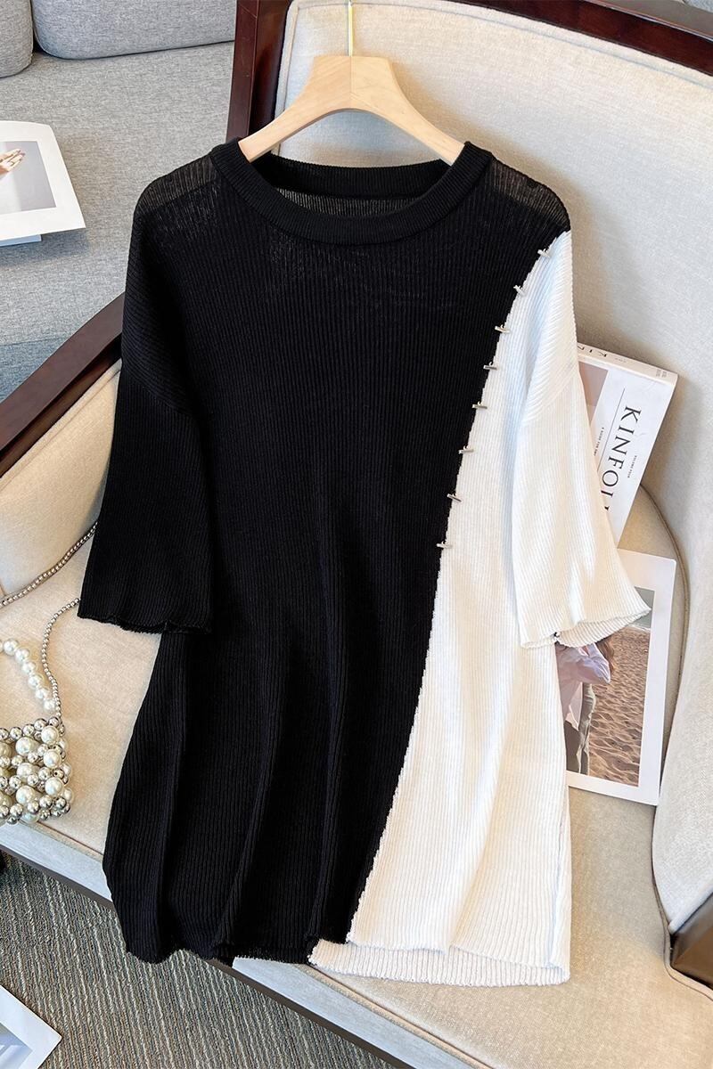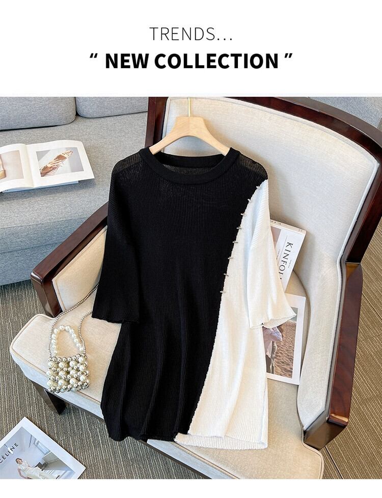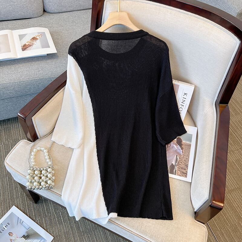 プラスサイズの婦人服 2023 夏の新しいスタイルの太った妹は細くてきれいなスタイルの緩いスプライシングコントラストカラーのミッドレングスのトップ女性 大きめサイズ サマー 夏物 888412658703608