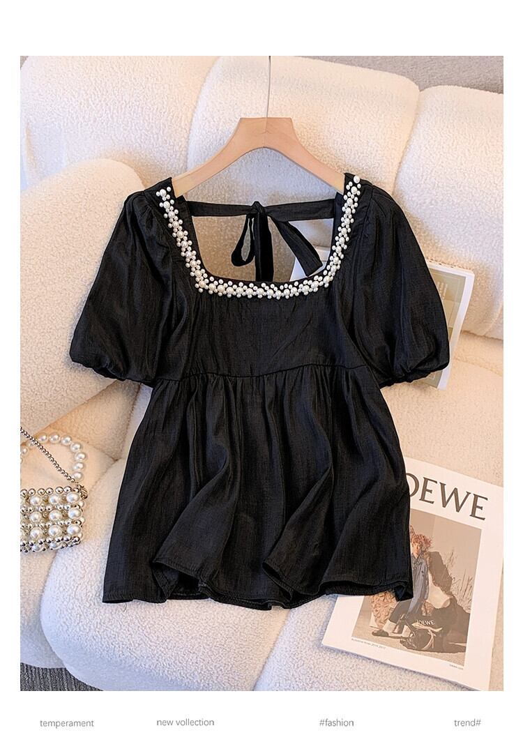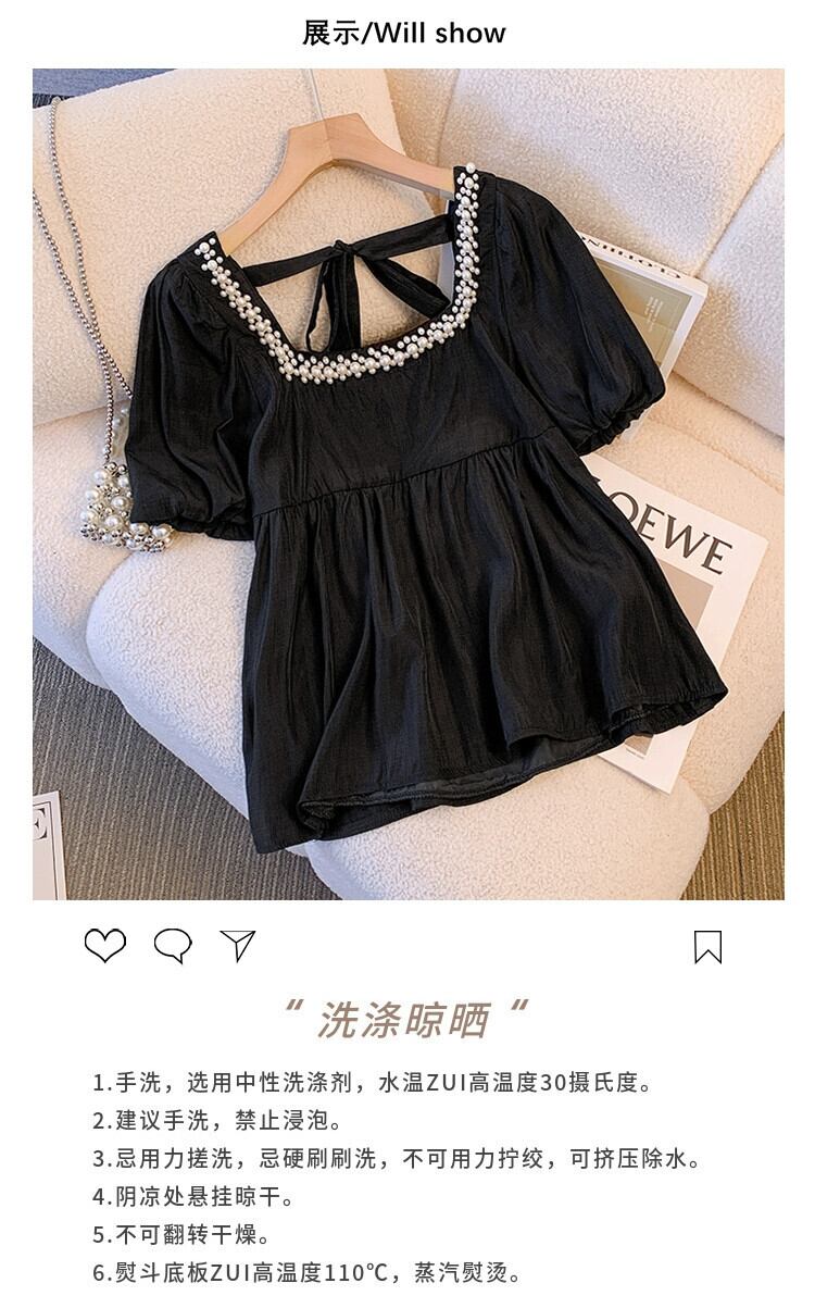 プラスサイズの婦人服 2023 夏の新しいファットシスター薄いスーツスクエアカラーパフスリーブトップショーツ 2 点セット 大きめサイズ サマー 夏物 ブルマー スクウェア 8884196914644376