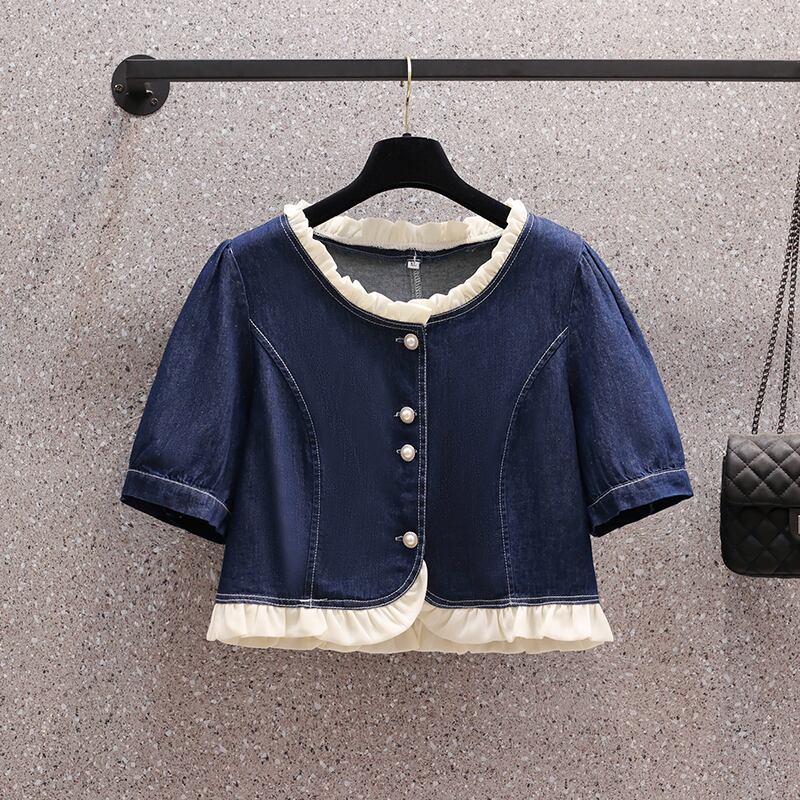 プラスサイズの婦人服 2023 夏の新ファットシスター気質フレンチトップレトロデニムスカート 2 点セット 大きめサイズ サマー 夏物 888412267937760