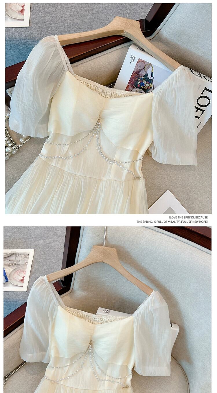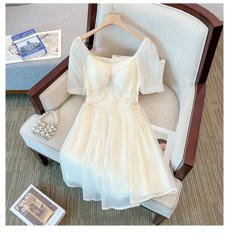 大きいサイズの婦人服 2023 夏の新しい脂肪姉妹気質スクエアカラーチェーン痩身バージョン半袖ドレス女性 大きめサイズ サマー 夏物 スクウェア 8884113294565190